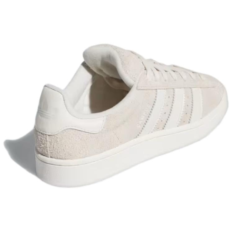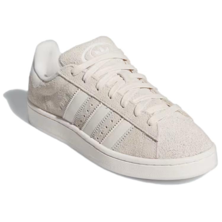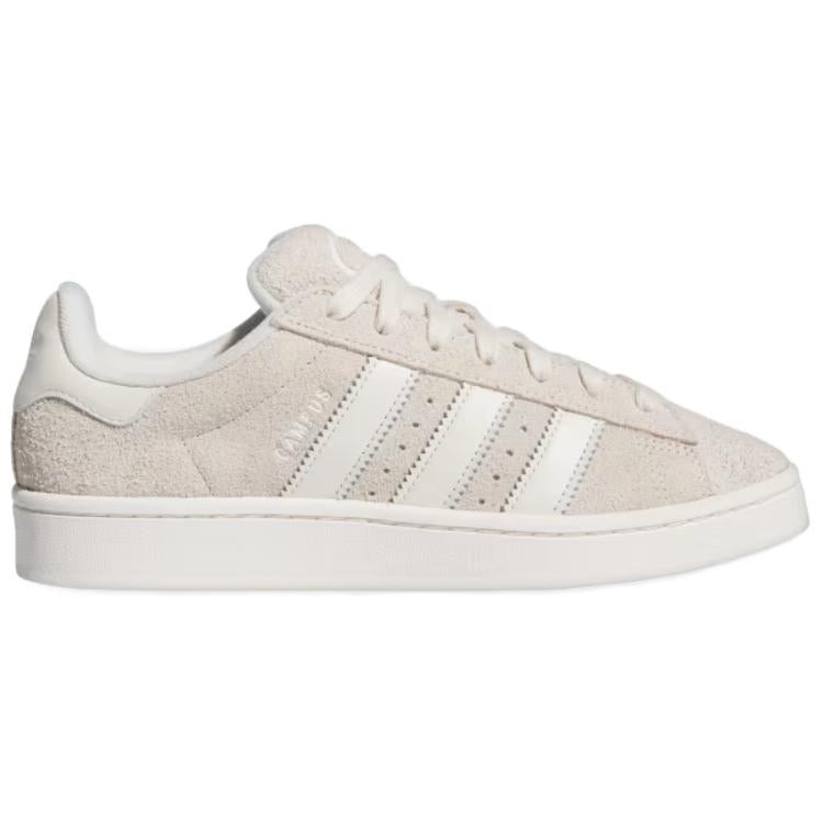 The adidas Campus 00s Wonder White Chalk White Core Black updates the retro Campus 00s silhouette with a light colorway of Wonder White with Chalk White and black accents.The upper is crafted from hairy suede in Wonder White with leather details in Chalk White on the serrated 3-Stripes logo and the heel mustache. Inspired by skateboarding sneakers from the early 2000s, the Wonder White Chalk White Core Black adidas Campus 00s features padding in the tongue and collar, creating a chunky silhouette. The off-white midsole provides soft cushioning underfoot and serves as a connection to the Campus legacy. Plush terry cloth lines the shoe, contributing to the premium feel.Our experts at Newsole like the choice of shaggy suede on the upper. It increases the soft aesthetic introduced by the off-white hues and feels velvety to the touch. The adidas Campus 00s Wonder White Chalk White Core Black was released on May 15, 2024, and sold for $110.