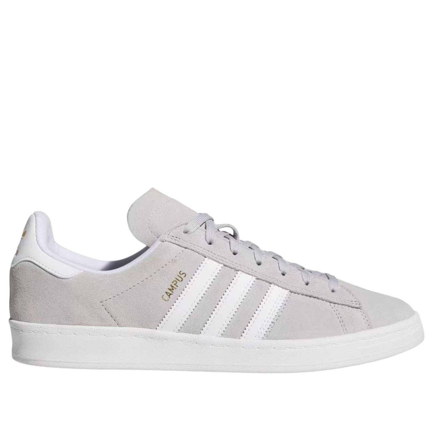 The adidas Campus ADV Camp Grey Two Cloud White Gold Metallic features a Grey Two/Cloud White/Gold Metallic colorway. This adidas Campus ADV was first released for $100.