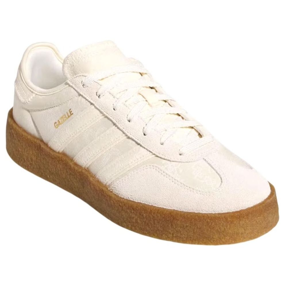 The adidas Gazelle Crepe CLOT By Edison Chen Crew White features a Cream White/Core White/Gold Metallic colorway. This adidas Gazelle Crepe was first released for $160 on April 19, 2025.