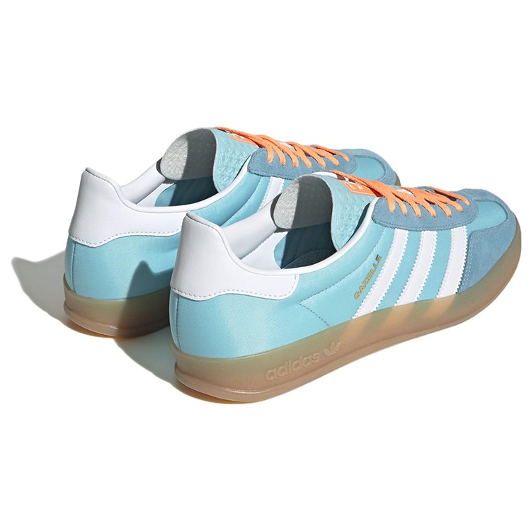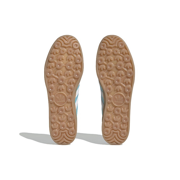 The adidas Gazelle Indoor Preloved Blue White Gum sneakers are a member of the Gazelle collection, which has been an enduring icon for over three decades. Making their comeback in a refreshing light blue and white colorway, these shoes stay true to their original silhouette. Crafted from premium materials, including calf leather and calf suede, their uppers sit atop flat, gum rubber outsoles designed to provide strong traction on any type of surface. This shoes classic look is further elevated by the presence of adidass three-stripes branding on the sides. The round toe design ensures a comfortable fit and is complemented by a front lace-up fastening system for a secure and customizable closure. What our experts enjoy most about the adidas Gazelle Indoor Preloved Blue White Gum sneaker is the logo patch at the tongue and the branded insole, which contribute to the shoes overall branding identity. This sneaker originally retailed at a price of $110 when it first released on February 15th, 2023.