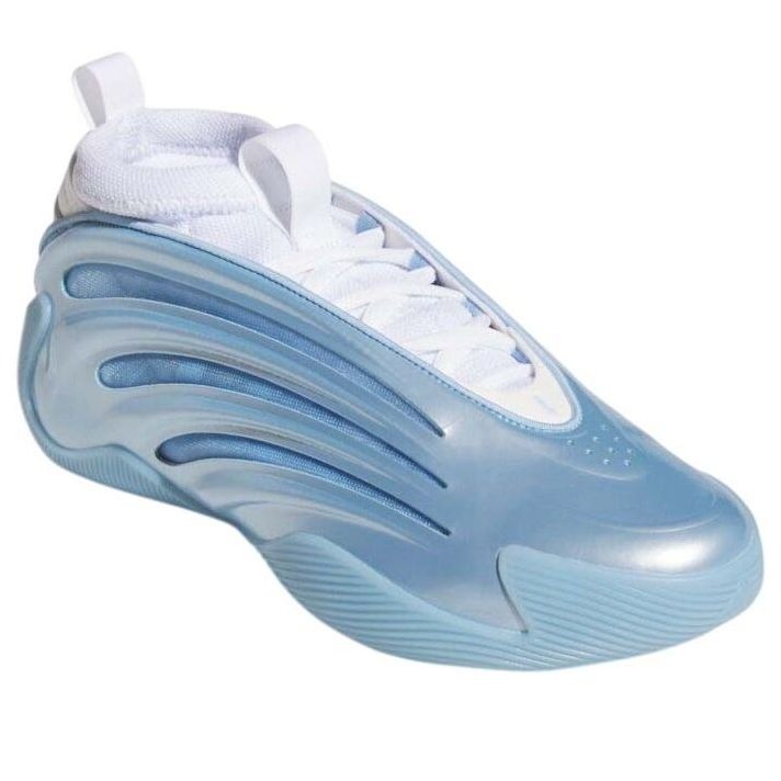 The adidas Harden Vol. 9 Glow Blue updates NBA player James Hardens 9th signature basketball shoe with an icy colorway of Glow Blue and Core White. This performance basketball shoe features a sleek construction, complete with a neoprene bootie supported by molded synthetic leather overlays and breathable mesh accents. Additionally, a carbon fiber heel cup stabilizes the foot and ankle, providing advanced energy return. While the bootie, laces, and heel cup come in Core White, the overlays, mesh detailing, and rubber outsole display a Glow Blue finish. In terms of cushioning, the sneaker houses Boost and Lightning Strike technology in the midsole, which creates a propulsive feel without weighing down the foot. Our experts at Newsole appreciate the way the minimal branding complements the shoes futuristic aesthetic. For instance, a variation of adidas signature 3-Stripes logo can be found on the heel along with discrete Harding branding. The adidas Harden Vol. 9 Glow Blue was released on May 10, 2025, and sold for $160.