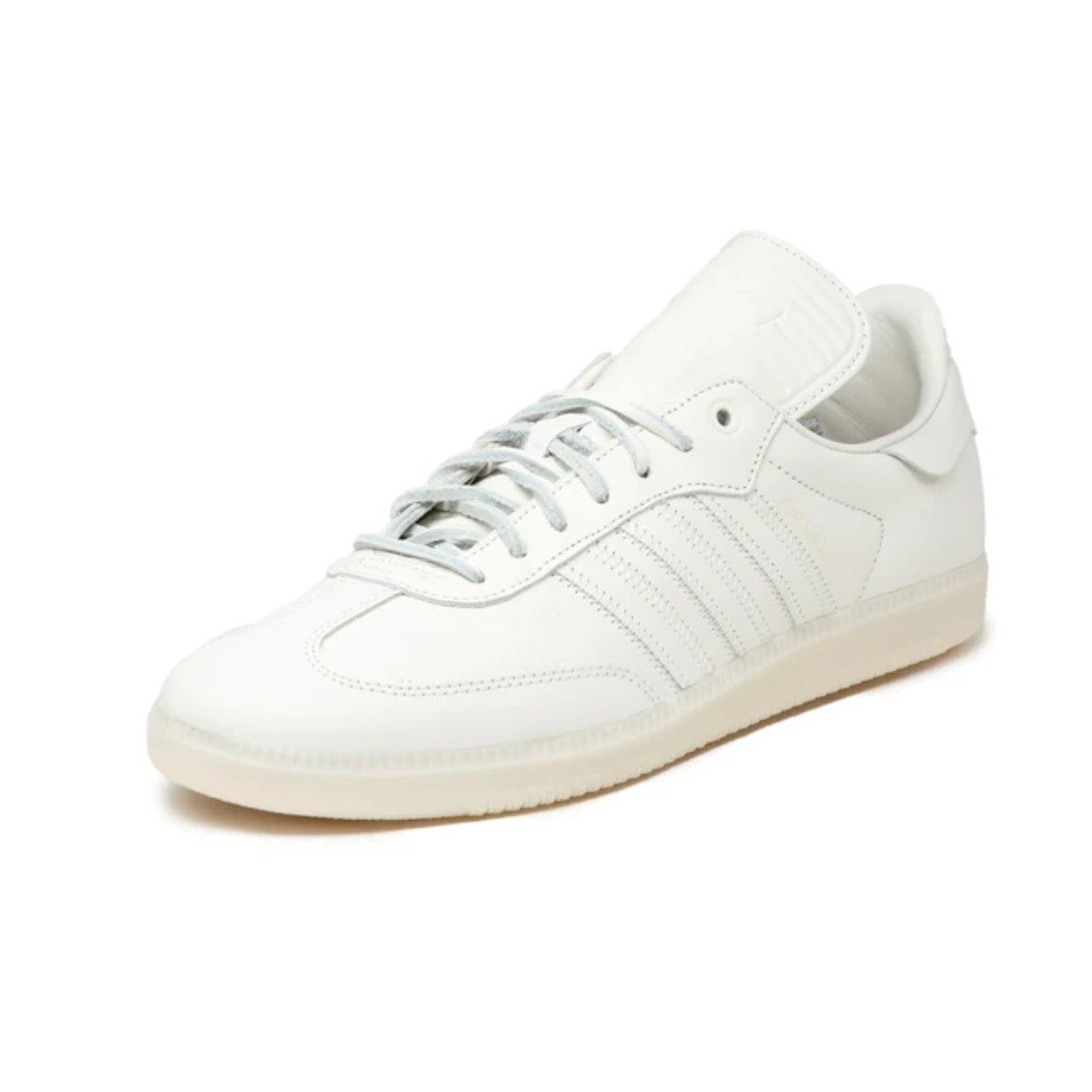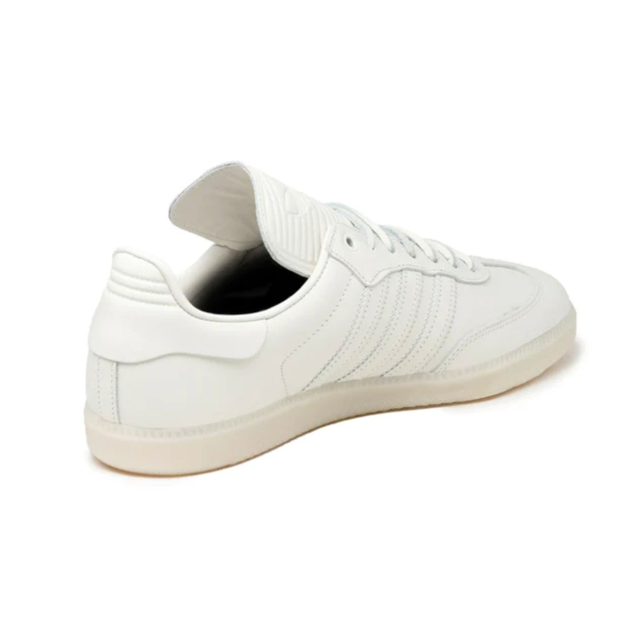 The adidas Samba Pharrell Humanrace White modernizes the well-known Samba silhouette with premium, expertly sourced materials and a contemporary colorway.The Pharrel Humanrace White adidas Samba is infused with Pharrell William s concept of design and function, elevating an everyday shoe to art. The sneaker boasts an all-white construction from the laces to the upper to the gum rubber outsole. The upper is crafted from premium, coated leather sourced from ECCO, a Danish producer known for its high-quality leather. Although the side panels maintain the classic 3-Stripes logo, each strip of leather is secured with zigzag stitching. This type of stitching gives the sneaker a bespoke feel. Harking back to the Samba s soccer roots, the sneaker boasts a sleek silhouette and thin, durable laces.Our experts at Newsole like the floating leather heel tab because it contributes to the sneaker s premium, hand-crafted aesthetic. The adidas Samba Pharrell Humanrace White was released on August 12, 2023, and sold for $200.