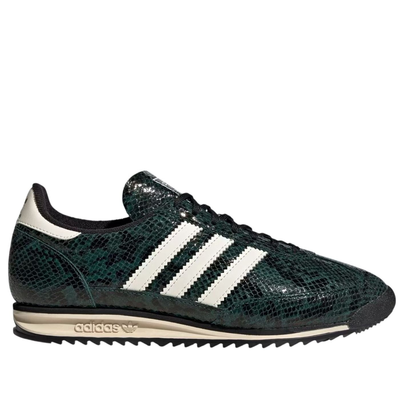 The adidas SL 72 OG Collegiate Green Snakeskin (Women’s) features a Collegiate Green/Core Black/Cream White colorway. This adidas SL 72 OG was first released for $100 on September 01, 2025.
