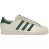The adidas Superstar 82 White Dark Green features a Cloud White/Dark Green/Off White colorway. This adidas Superstar 82 was first released for $110 on June 15, 2022.