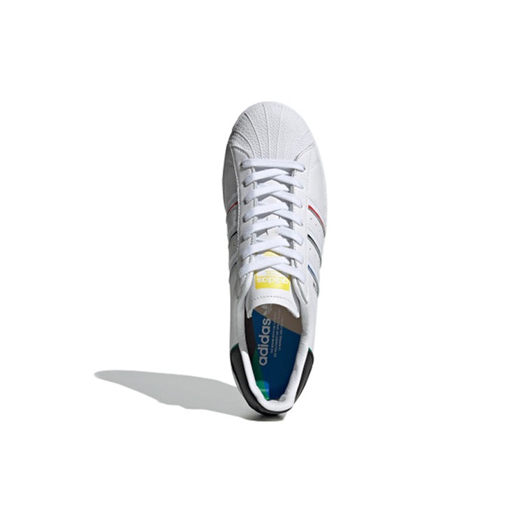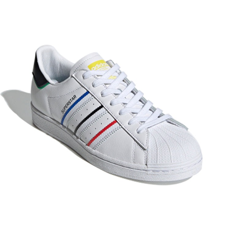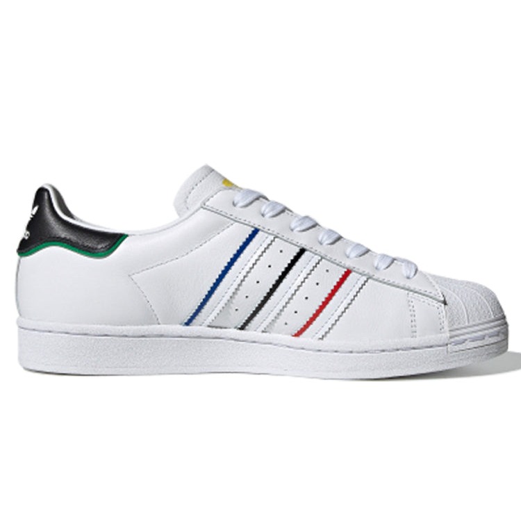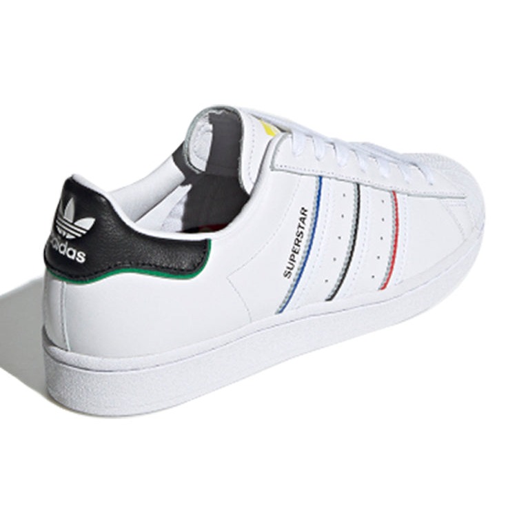 The adidas Superstar Olympics (2020) features a Footwear White/Footwear White/Core Black colorway. This adidas Superstar was first released for $100.
