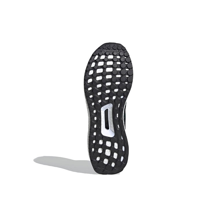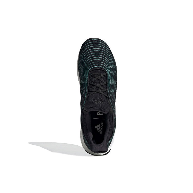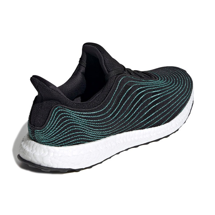 The adidas Ultra Boost DNA Parley Black (2020) combines high-performance running technology with sustainability. The sneaker showcases a black colorway with subtle detailing. The Primeknit upper provides a snug, sock-like fit, offering breathability and flexibility. The Boost midsole, a hallmark of the Ultra Boost line, ensures exceptional cushioning and responsiveness, resulting in a comfortable ride and energy return. The Torsion System technology in the midfoot enhances stability and supports natural foot movement. Additionally, the Continental Rubber outsole offers excellent traction and durability on various surfaces. One of its notable features is the upper construction, which is made from recycled plastic materials, specifically upcycled ocean plastic. This collaboration between adidas and Parley for the Oceans aims to reduce environmental impact by repurposing marine plastic waste. To stick with the marine concept, wavy lines of Contrast Blue stitching and tonal embroidered Three-Stripes are added to the design. The adidas Ultra Boost DNA Parley Black (2020) was released on June 8th, 2020. It originally retailed at a price of $180.