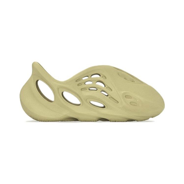 The adidas Yeezy Foam RNNR Sulfur Kids is a futuristic, one-piece design that comes in a lighter Sulfur colorway and is constructed out of lightweight EVA and harvested algae. The monochromatic shoe features oval and circular perforations for aeration during the summer heat, including a defined rubber tread for additional stability and in-sole support. The adidas Yeezy Foam RNNR Sulfur Kids footwear is slightly brighter than the previous Ochre and Desert Sand colorways. The adidas Yeezy Foam RNNR Sulfur Kids earthy tone color palette footwear was released in April 2022, retailing at $65.