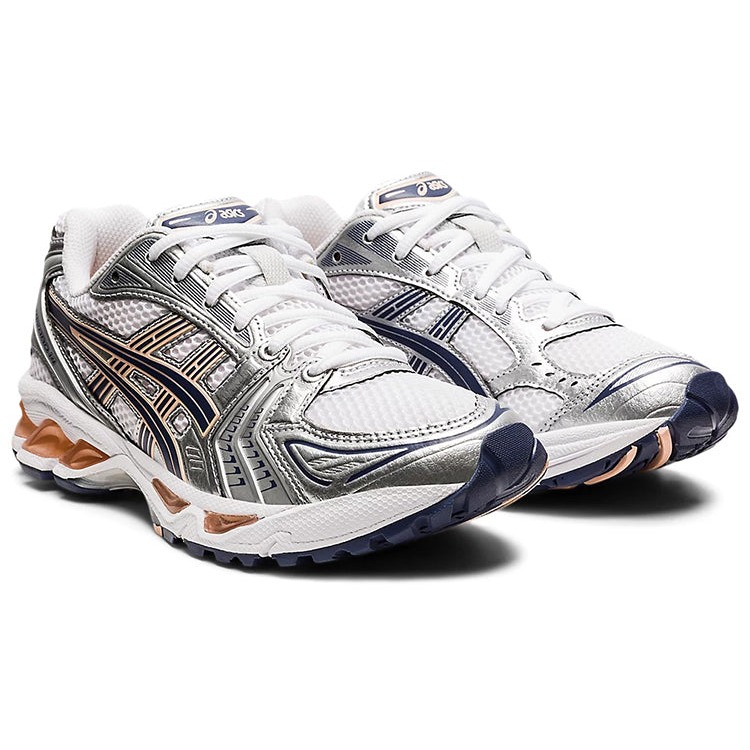 The ASICS Gel-Kayano 14 White Thunder Blue (Womens) features a White/Thunder Blue colorway. This ASICS Gel-Kayano 14 was first released for $160 on January 01, 2022.
