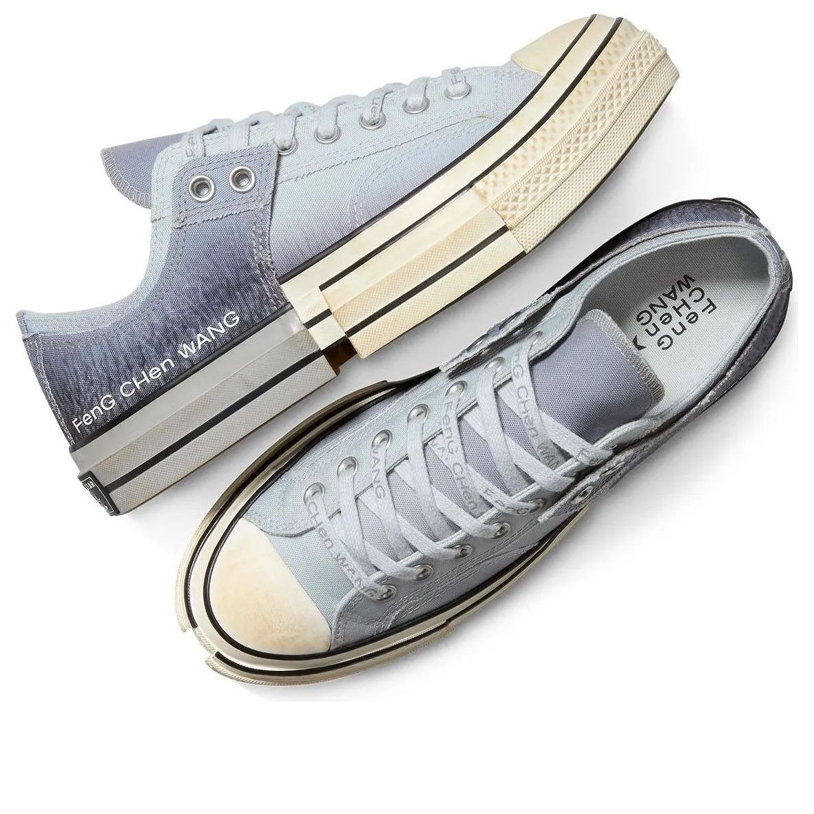 The Converse Chuck Taylor All Star 70 Ox Feng Chen Wang 2-in-1 Blue features a Gray/Egret/Black colorway. This Converse Chuck Taylor All Star 70 Ox was first released for $130 on May 20, 2025.