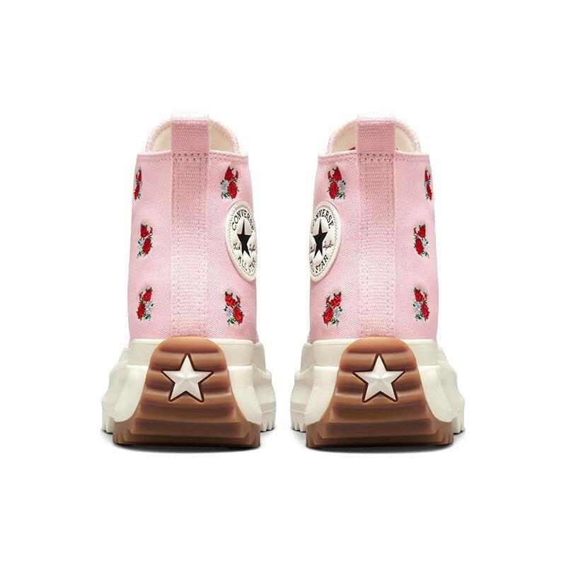 The Converse Run Star Hike Platform Hi Embroidered Floral Sunrise Pink features a Sunrise Pink/University Red colorway.