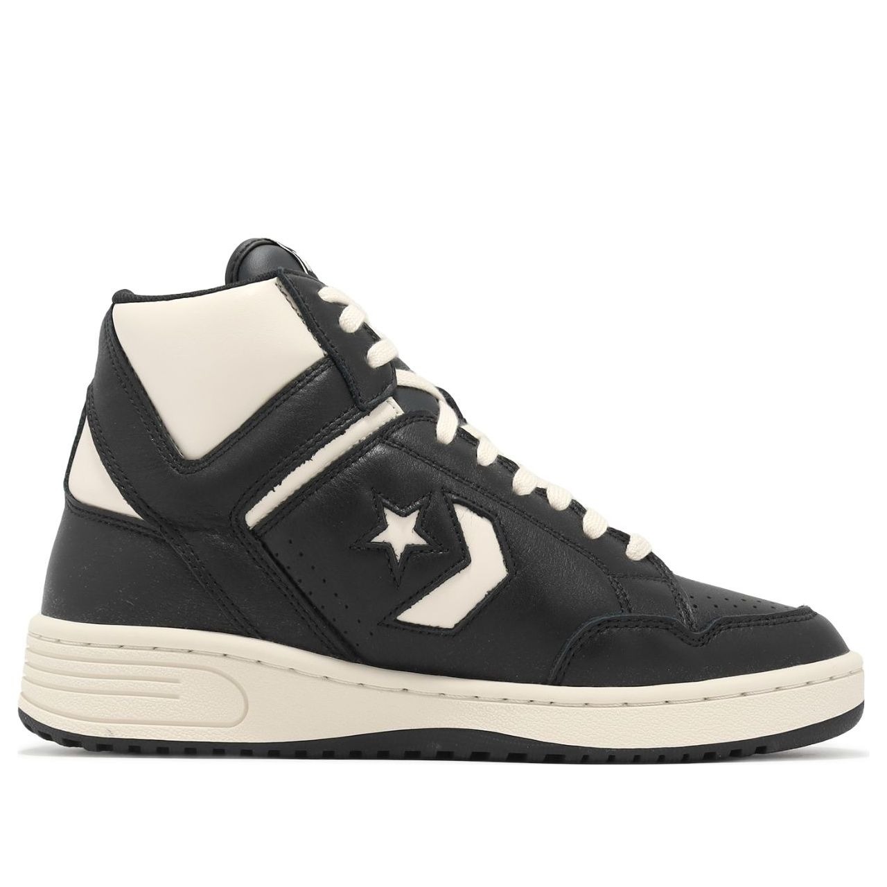 The Converse Weapon Hi Black Natural is a mid-top trainer that brings on-court performance to streetwear. It’s a robust shoe with a classic black and white colorway for vintage appeal.The Converse Weapon has a storied history, going back to the 1980s when NBA icons like Magic Johnson and Larry Bird wore it. This is an up-to-date makeover that retains the shoe’s roots and adds the latest comfort technology. At the Black Natural Converse Weapon Hi, the all-leather upper is black, with a white ankle collar and star-chevron on the side. CX foam cushioning gives a high level of comfort, and the rubber sole provides a strong traction effect. It makes an excellent everyday shoe with eternally cool vintage styling. At the same time, it’s a very welcome addition to anyone’s Converse collection.We were really excited to unbox this sneaker, given its illustrious history. Our Newsole reviewers praised this update, commending its high-quality materials that promise durability, and its modernized comfort features. The Converse Weapon Hi Black Natural was released on 8 February 2024, at a retail price of $120.