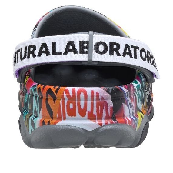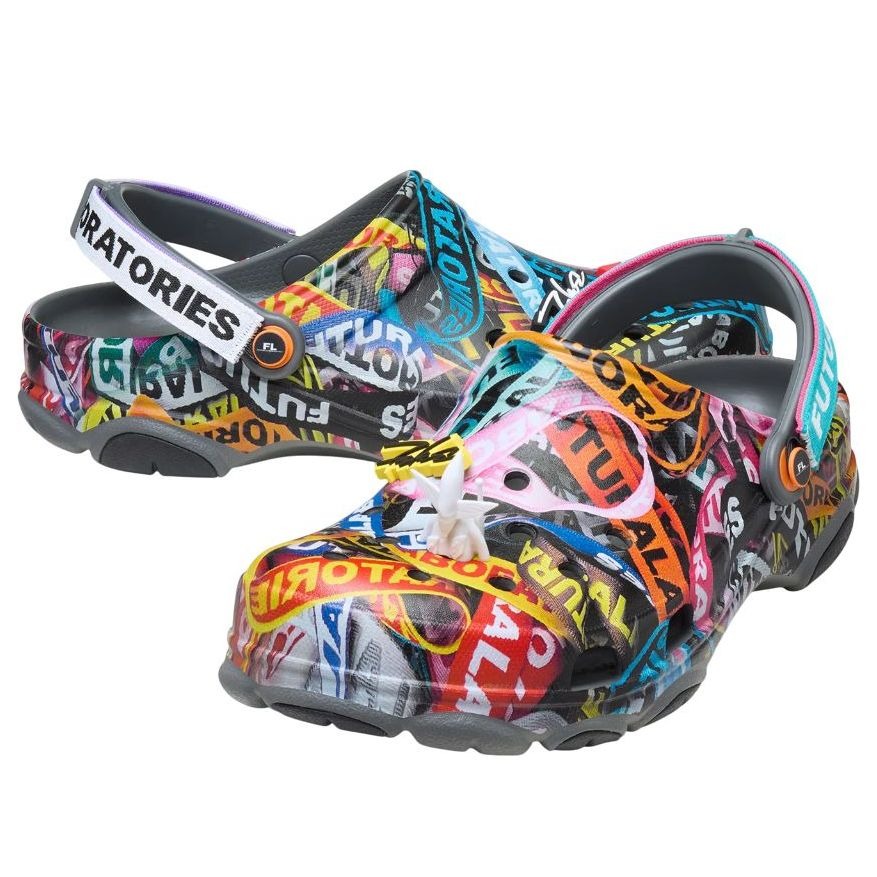 The Crocs All-Terrain Clog Futura Laboratories features a Grey/Multi colorway. This Crocs All-Terrain Clog was first released for $80.