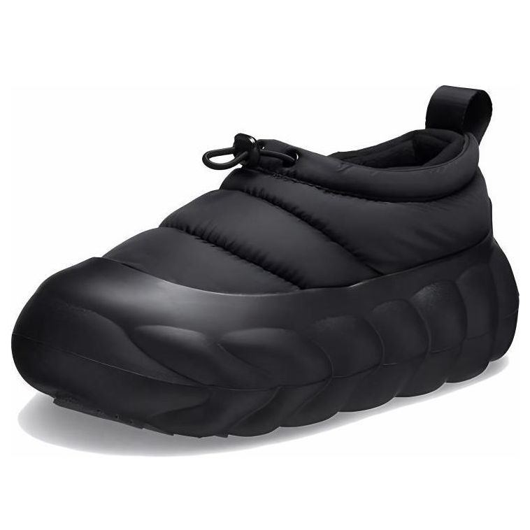 The Crocs Overpuff Shorty Black is a leisure shoe known for its superior comfort and convenience. This version of the Crocs Overpuff Shorty comes in a black color that is dominant throughout. The upper is made of quilted Cordura ripstop fabric for durability and warmth, giving it a puffy look. The sock-like ankle is equipped with a drawstring for an easily customizable fit. The black puffy outsole matches the vibe of the upper with its chunky black build, and it comes up to protect the upper from the elements. Rubber studs on the outsole provide more traction. The Crocs logo is found on the heel and contains a pull tab for easy on and off. What stands out about this shoe is its puffy design it looks like a puffer jacket for your foot and even functions the same way. The Crocs Overpuff Shorty Black was released on September 25, 2024, for $90.