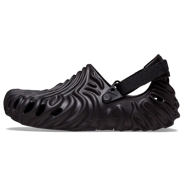 Since its release, Crocs Pollex Clog by Salehe Bembury Sasquatch remains of the highest-selling variants in the Crocs catalog. The construction of Pollex Clog mainly utilizes croslite material. These Crocs come in an attractive sasquatch black colorway and feature a heel attached to the optional sport mode for great fitting. The upper part is perforated to enhance its breathability and allow the shedding of water and other particles, such as debris, from inside the Crocs. The Crocs Pollex Clog by Salehe Bembury Sasquatch was released on September 22, 2022. At the time of the release, its retail price was $85.