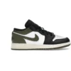 The Jordan 1 Low Black Toe Medium Olive (GS) features a Black/Medium Olive/White colorway. This Jordan 1 Low was first released for $90 on September 20, 2024.