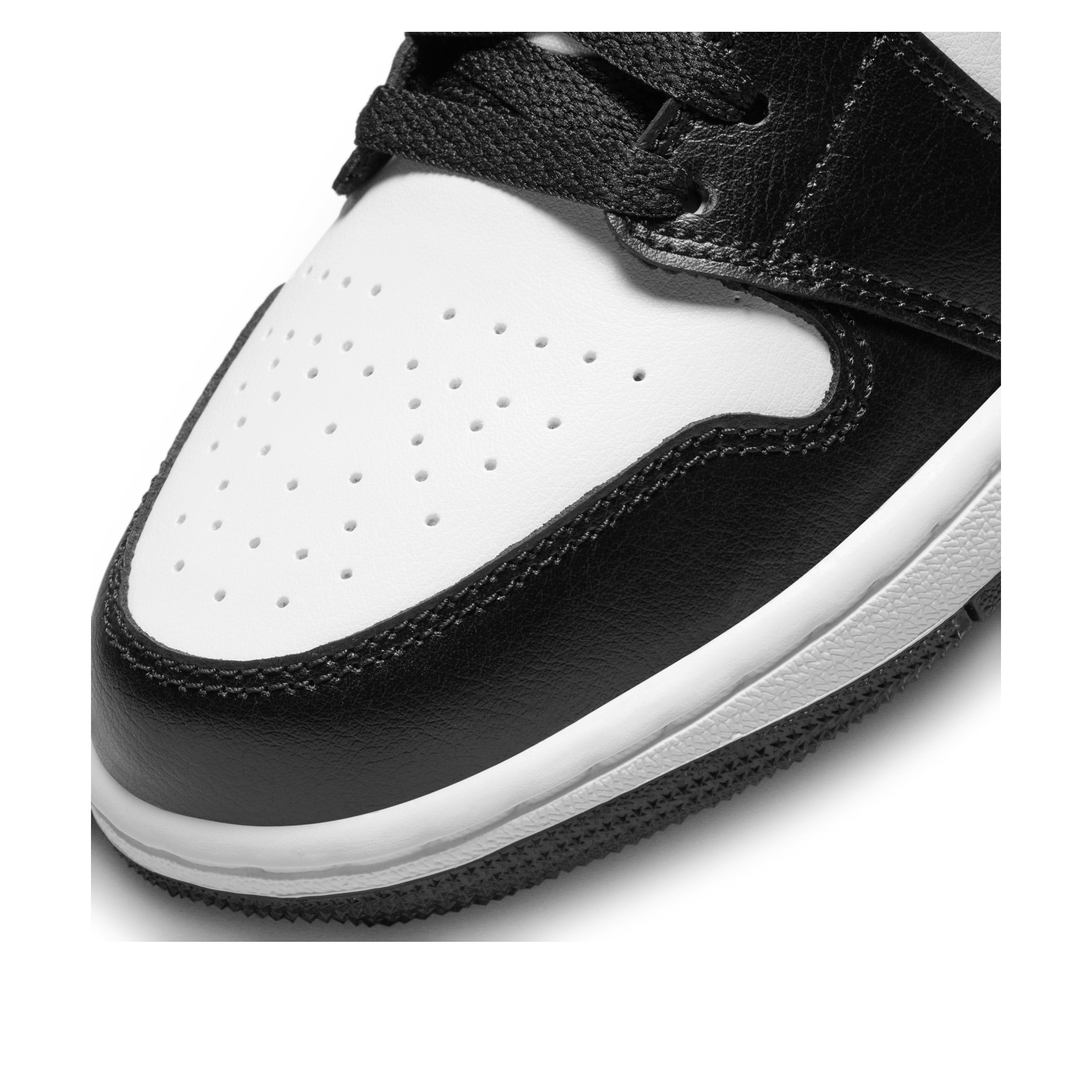 The Air Jordan 1 Low Panda (2023) (W) arrives in a white, black, and white color palette. The Low Panda Jordan 1 (2023) (W) has an upper that is constructed from durable materials, including a combination of supple leather and suede. The shoes cushioned midsole and supportive collar ensure a comfortable fit. The outsole is made of a durable rubber material with a traditional tread pattern, providing traction and stability. The shoes toe box is perforated for ventilation. The sneaker features black Swoosh branding on either lateral side, the Jumpman logo on the tongue, and the Air Jordan Wings logo on the heel. The womens rendition of the Air Jordan 1 Low Panda (2023) (W) was released on March 10, 2023, and sold for a retail price of $110.