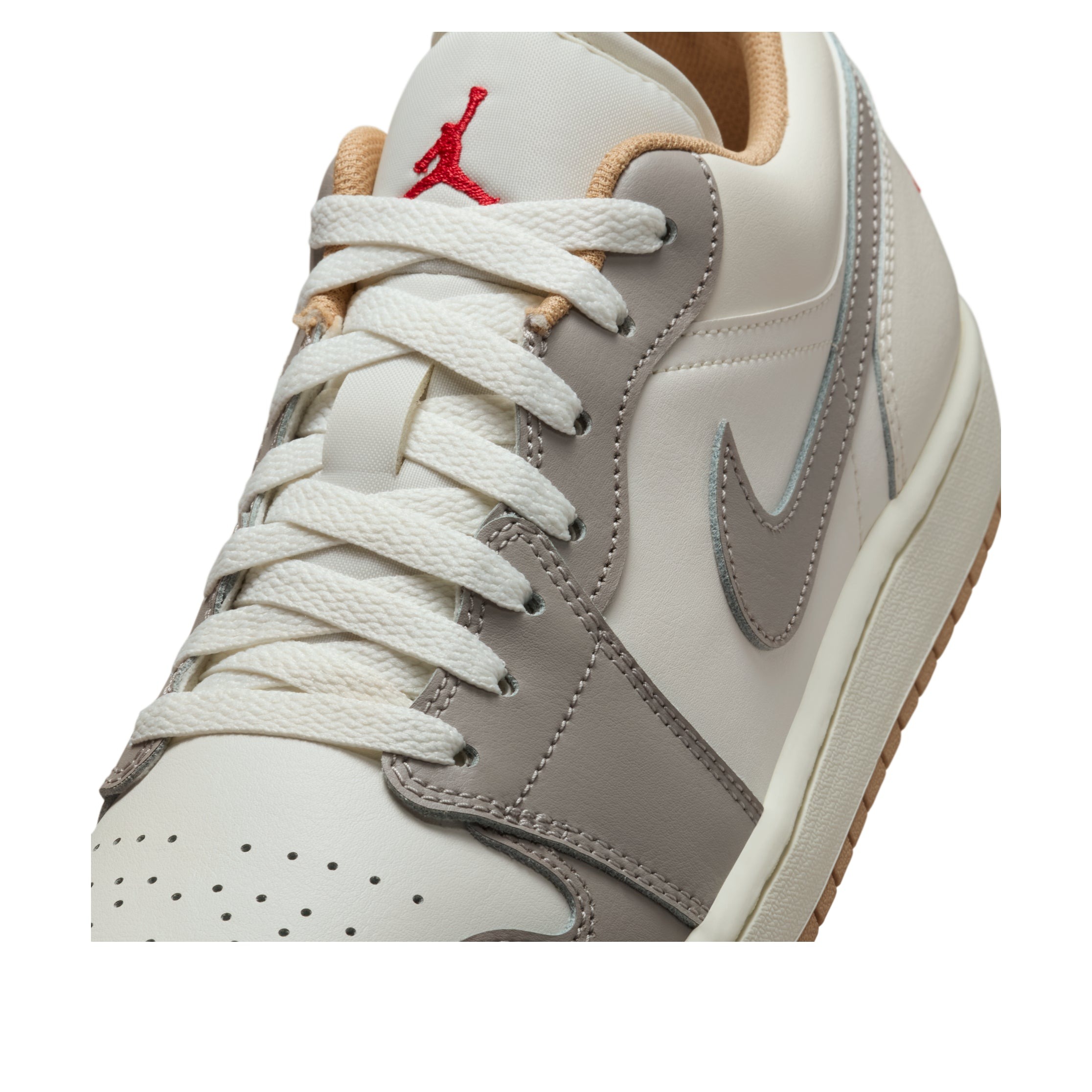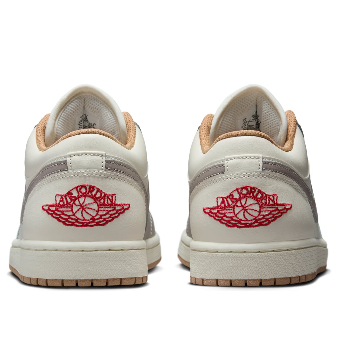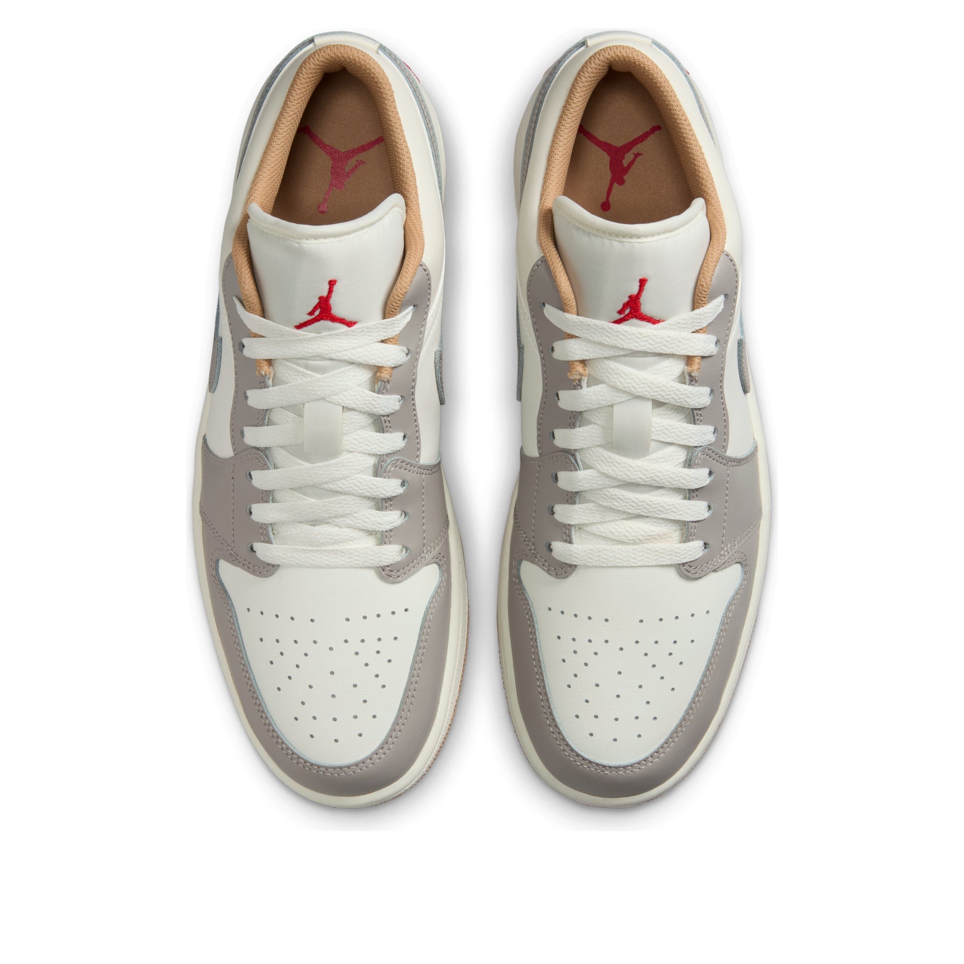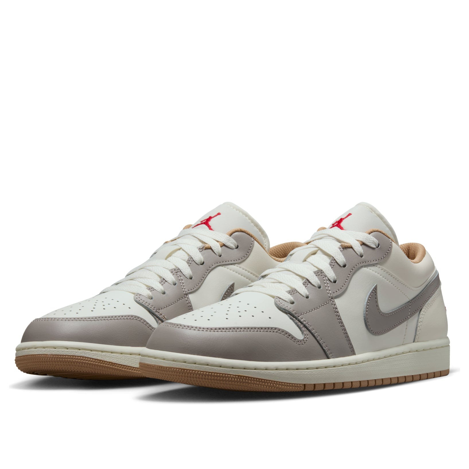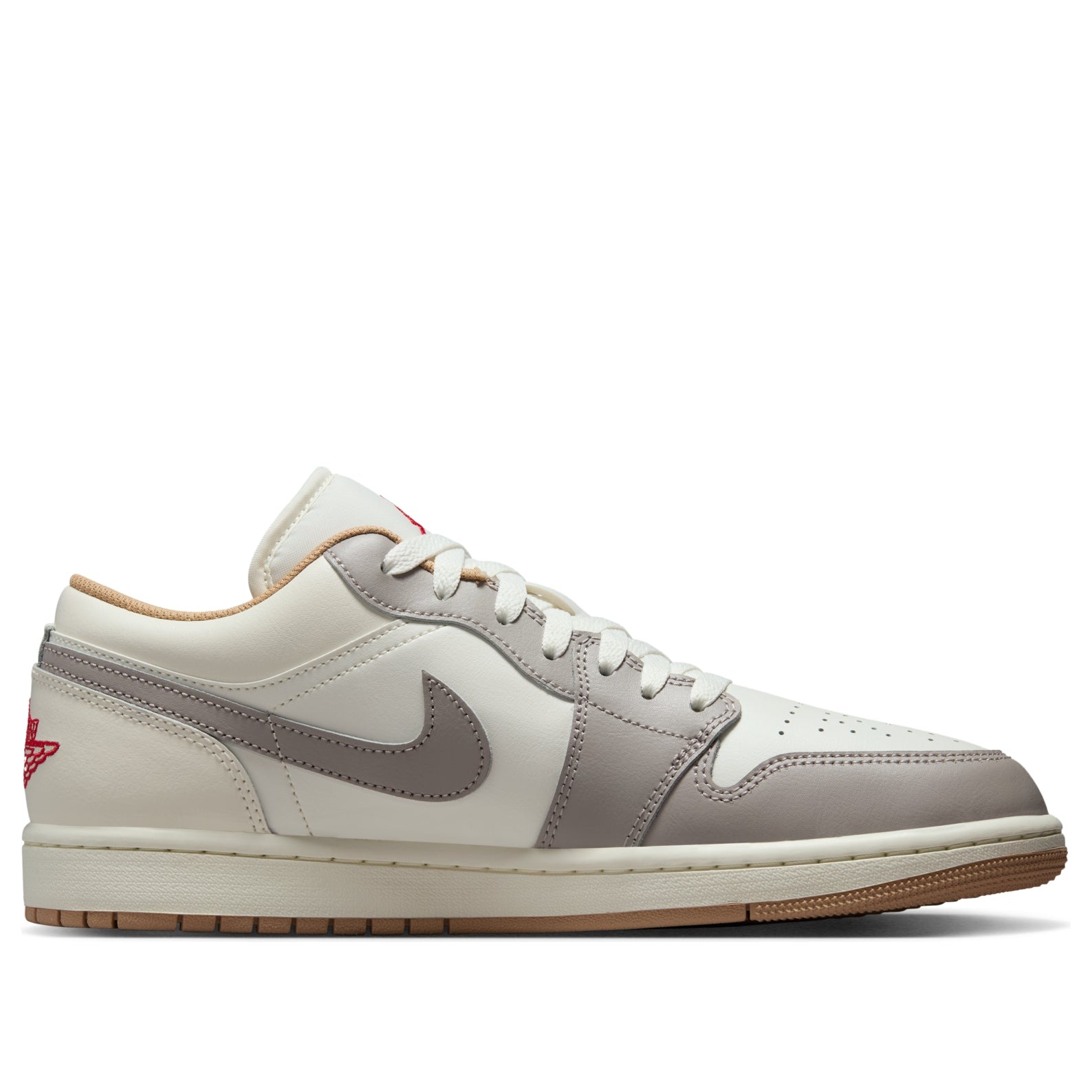 The Jordan 1 Low Sail College Grey Rattan features a Sail/College Grey/Hemp/Fire Red colorway. This Jordan 1 Low was first released for $120 on June 20, 2025.