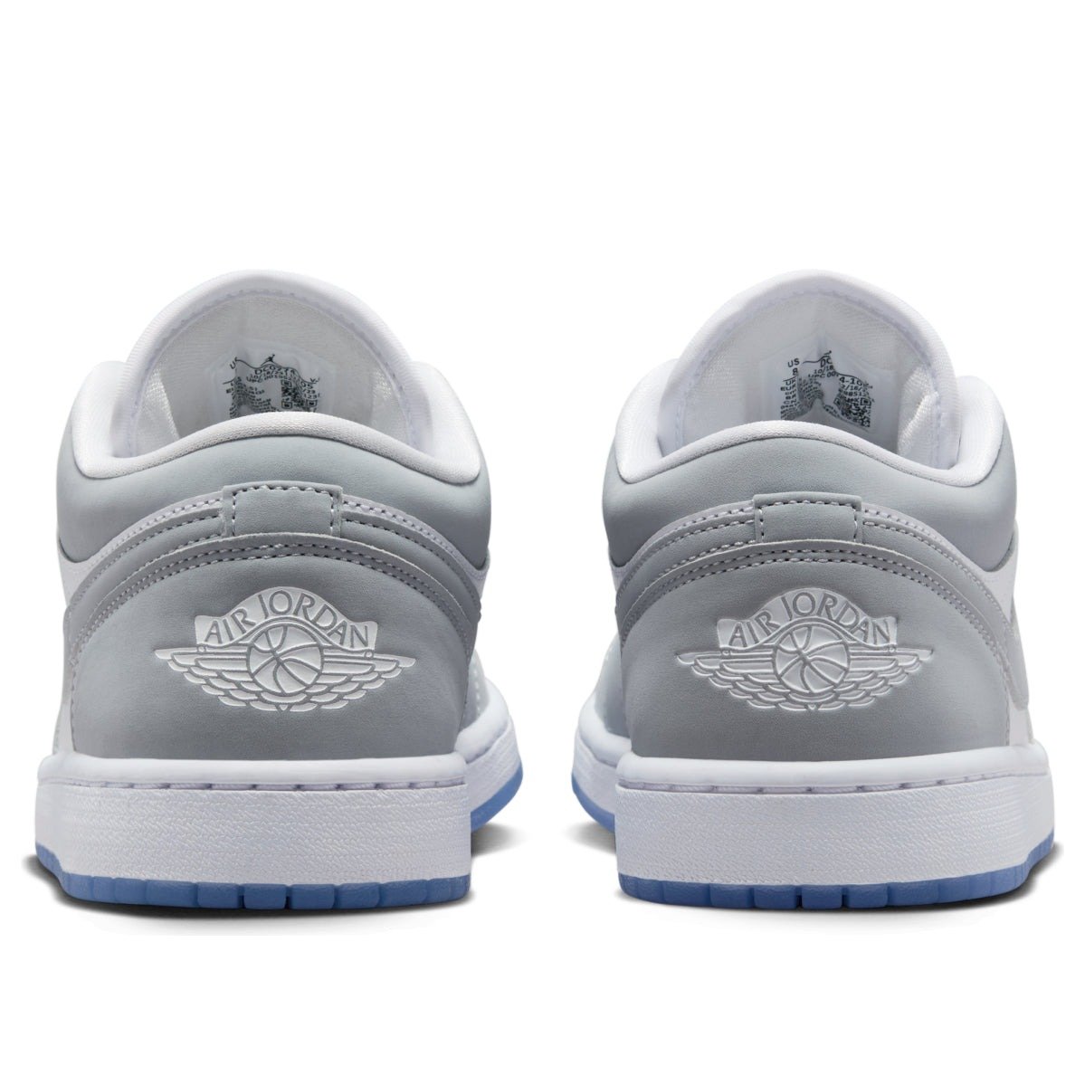 The Wolf Grey Durabuck overlays and Swooshes adorn the white leather upper of the women’s Jordan 1 Low Wolf Grey. The last touches include a translucent outsole and the Jordan Wings logo on the heel.