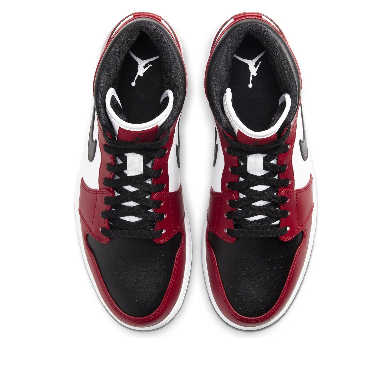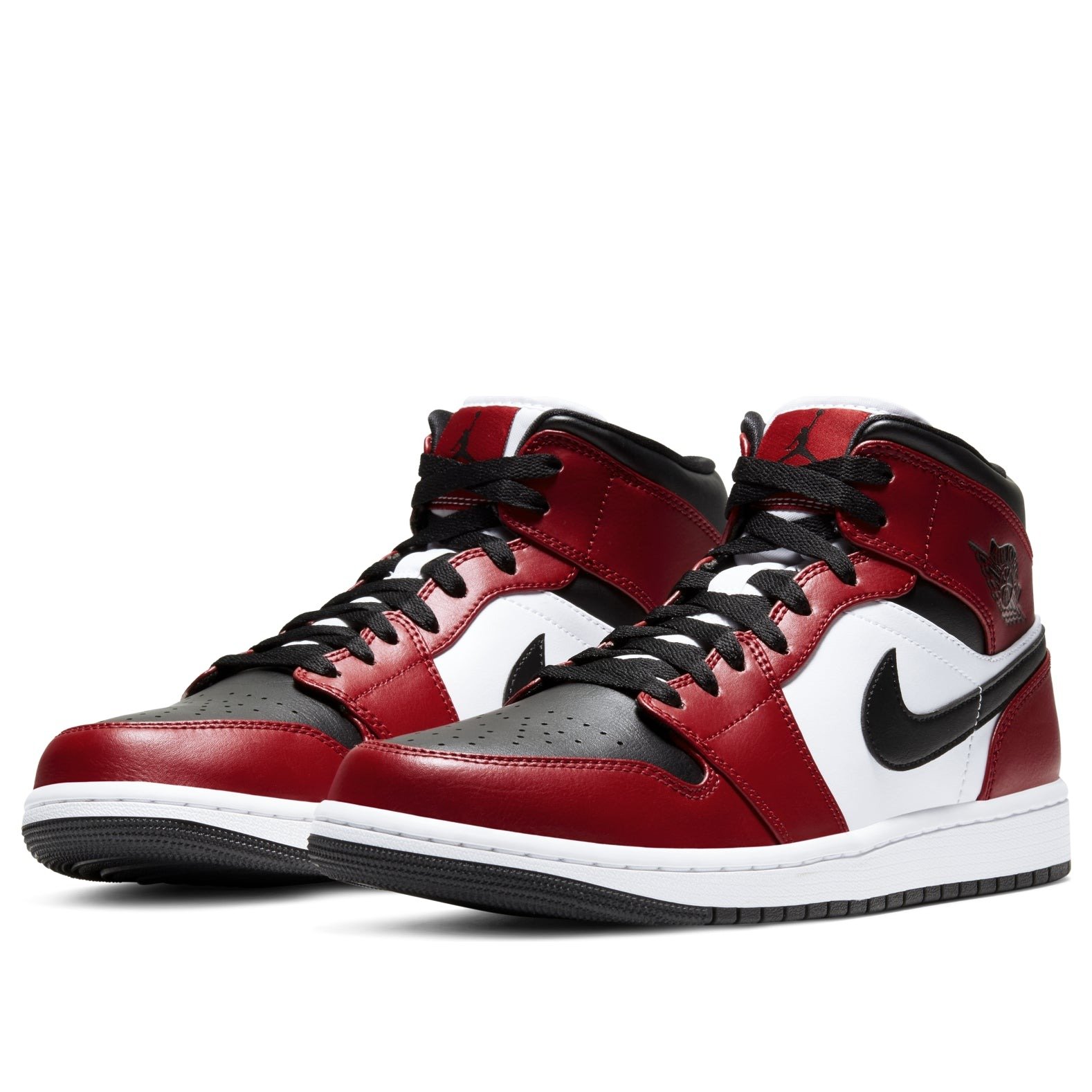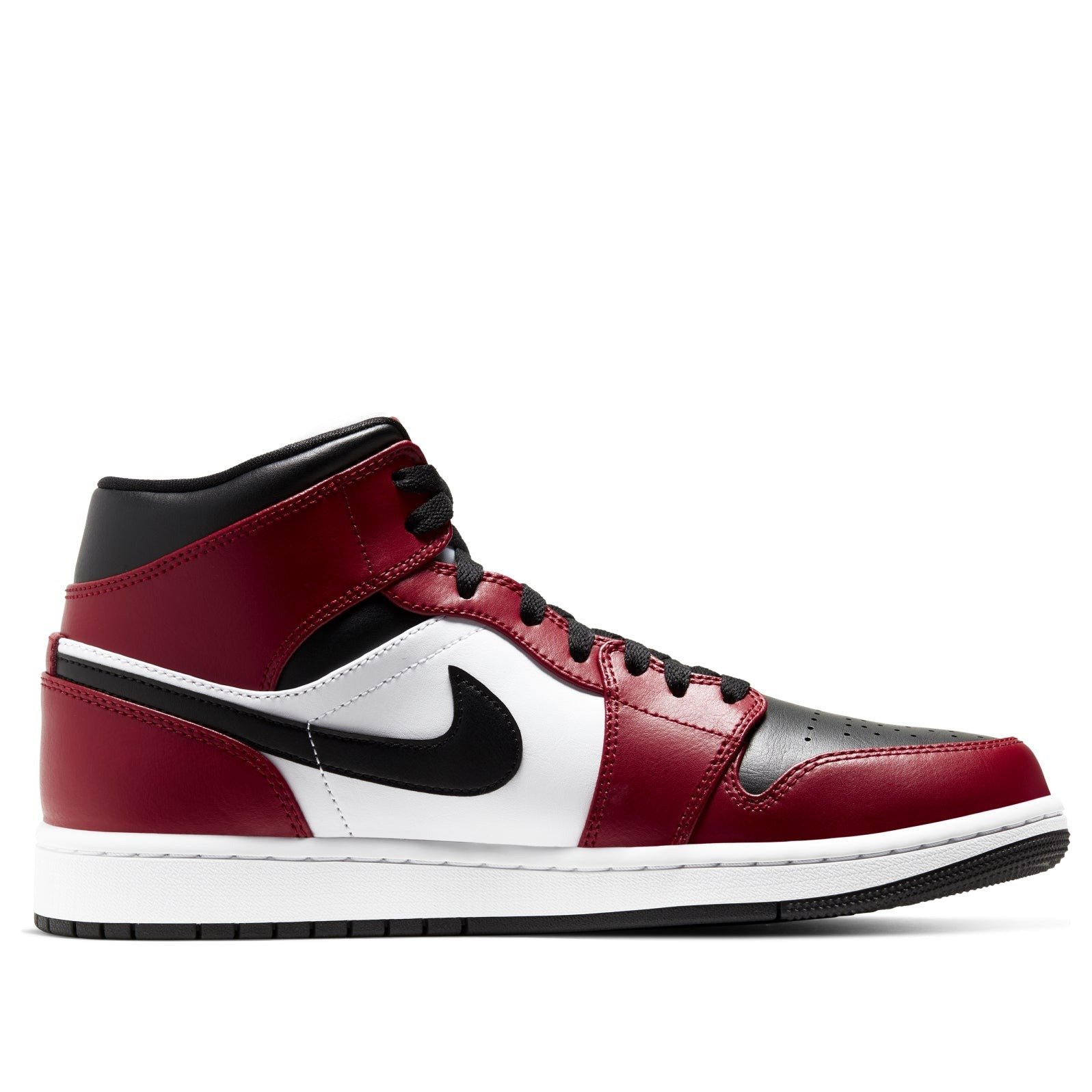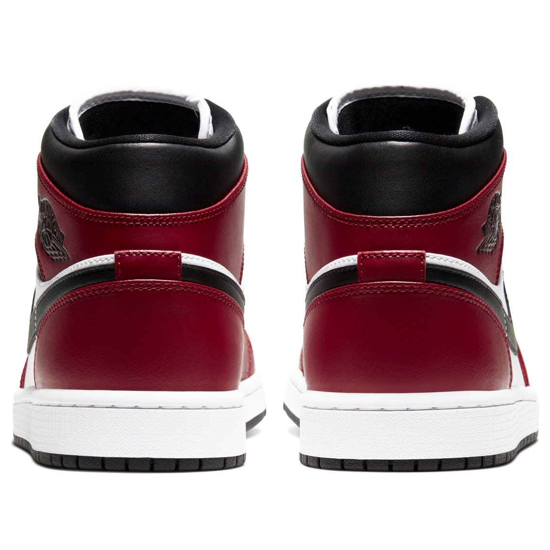 The Jordan 1 Mid Chicago Toe features a black, white, and Gym Red leather and nylon upper. From there, a nylon tongue featuring a black „Jumpman“ logo set and a white midsole complete the design.The Jordan 1 Mid Chicago Toe released in April of 2020 and retailed for $115.