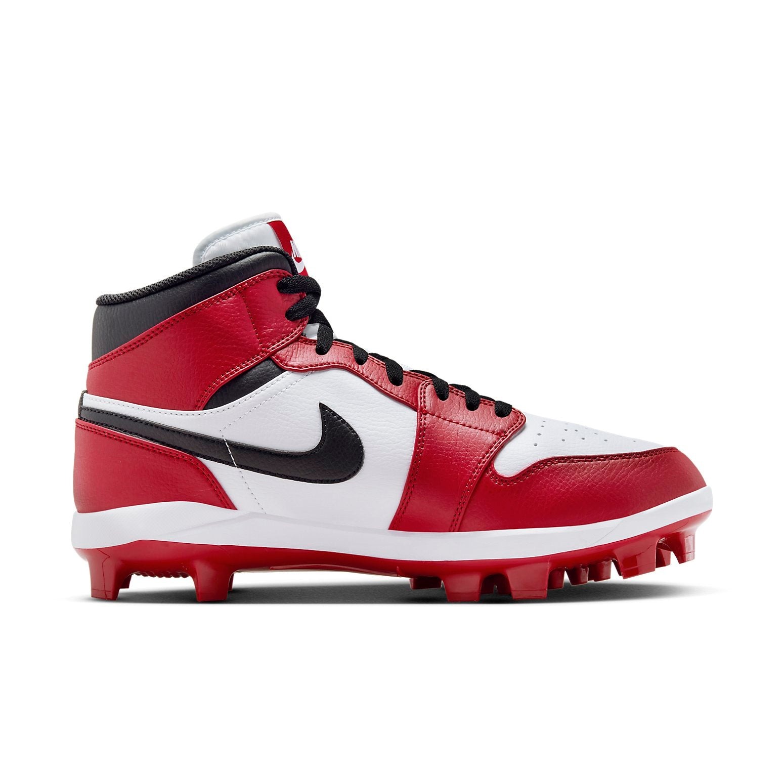 Whether hitting home runs or a night out, the Air Jordan 1 Retro High MCS Chicago is the perfect retro-inspired high-profile athletic shoe that meets all the requirements of a cool lifestyle sneaker.Combining the look of the basketball shoes from the same range, the Retro Highs from Air Jordan bring you a baseball cleat that celebrates the Chicago Bulls. With a synthetic leather upper on a white color base, red overlays, and black accents such as the Swoosh, Air Jordan logo, laces, and collar, the shoe has all the heritage branding needed for fans. With a cushioned yet light midsole and plastic cleated outsoles for traction on grass, it is a great performance shoe that has also found its way into streetwear circles.We love how Air Jordans effortlessly combine performance and lifestyle in their designs, including the perforated toe cap. The Jordan 1 Retro High MCS Chicago was released on November 7, 2023, for $150.