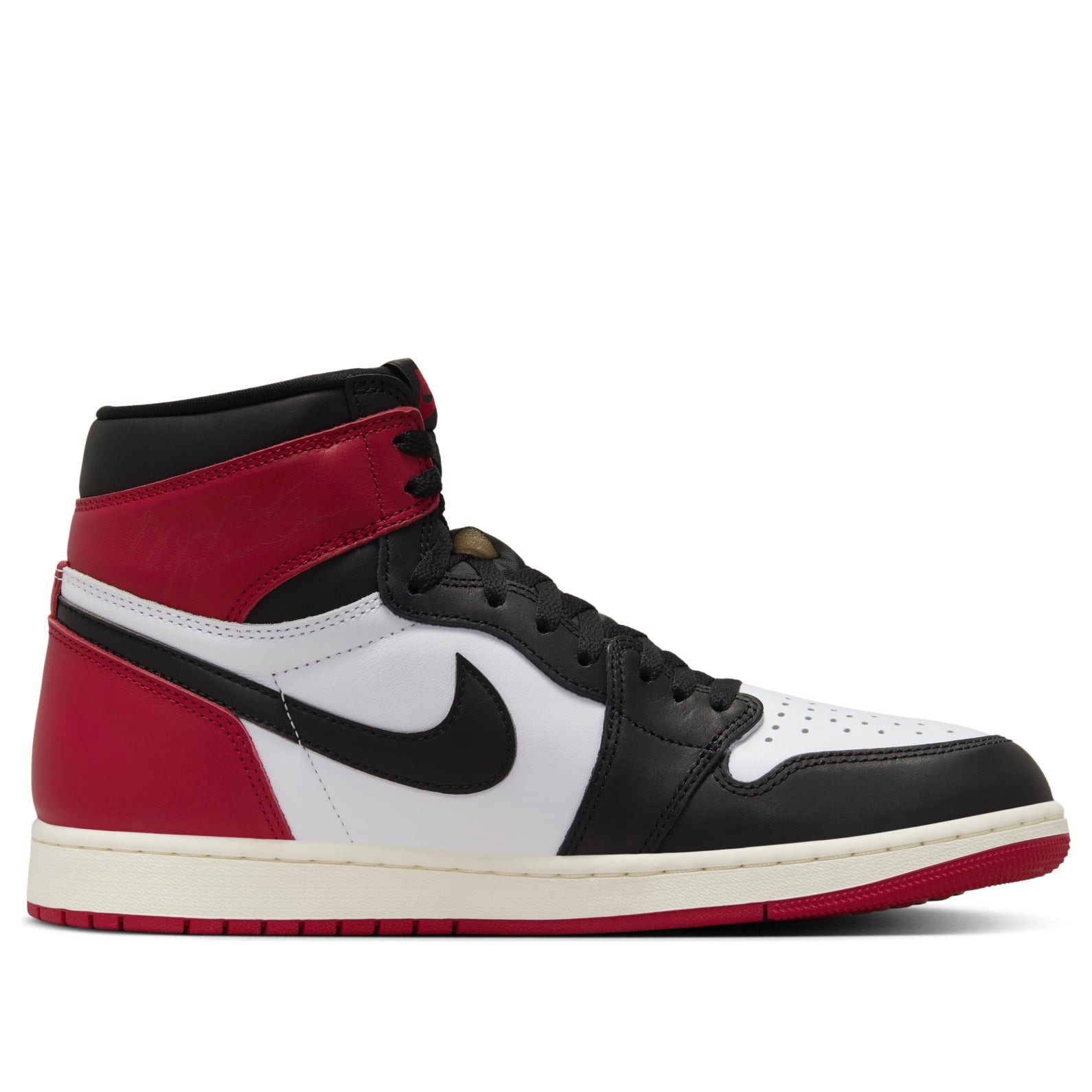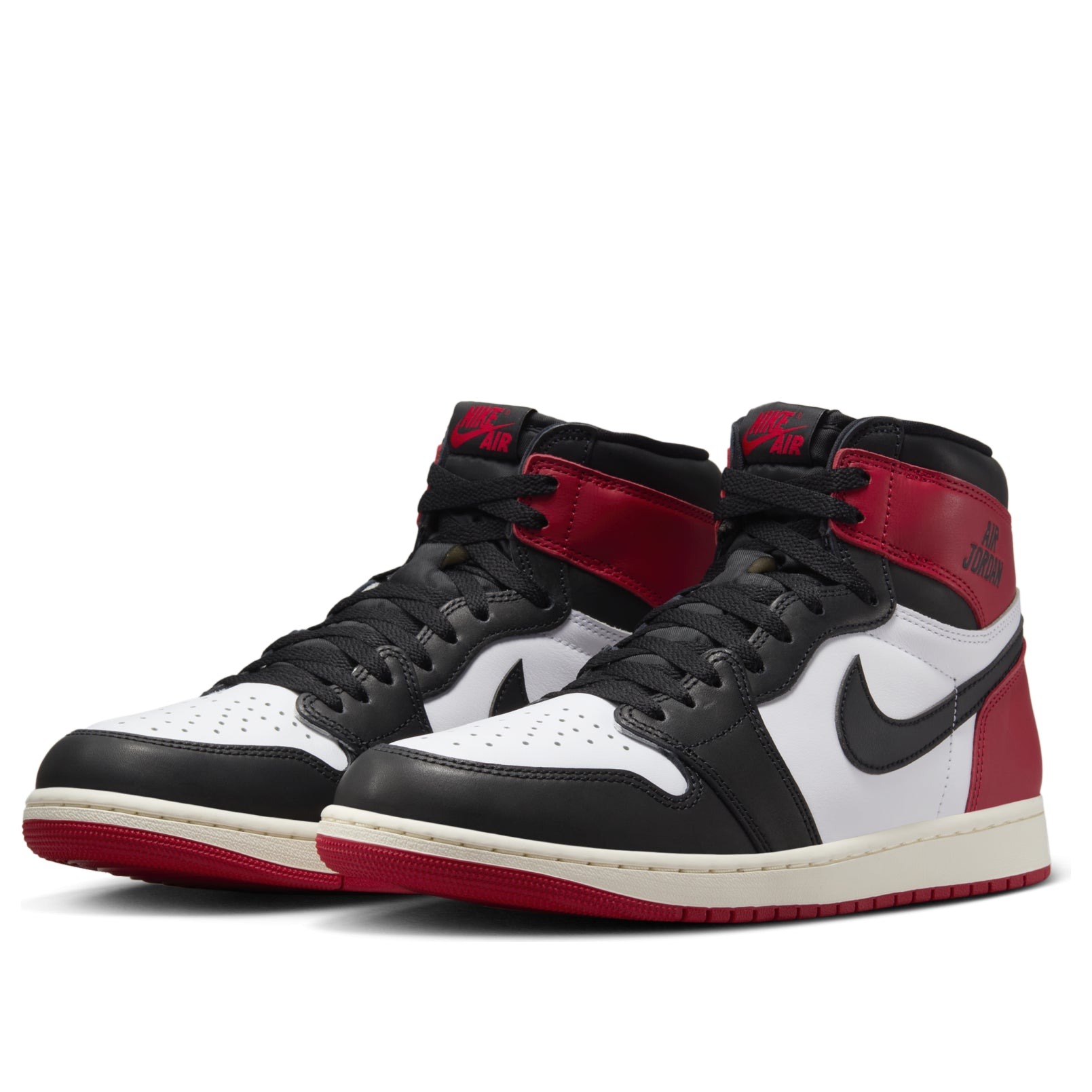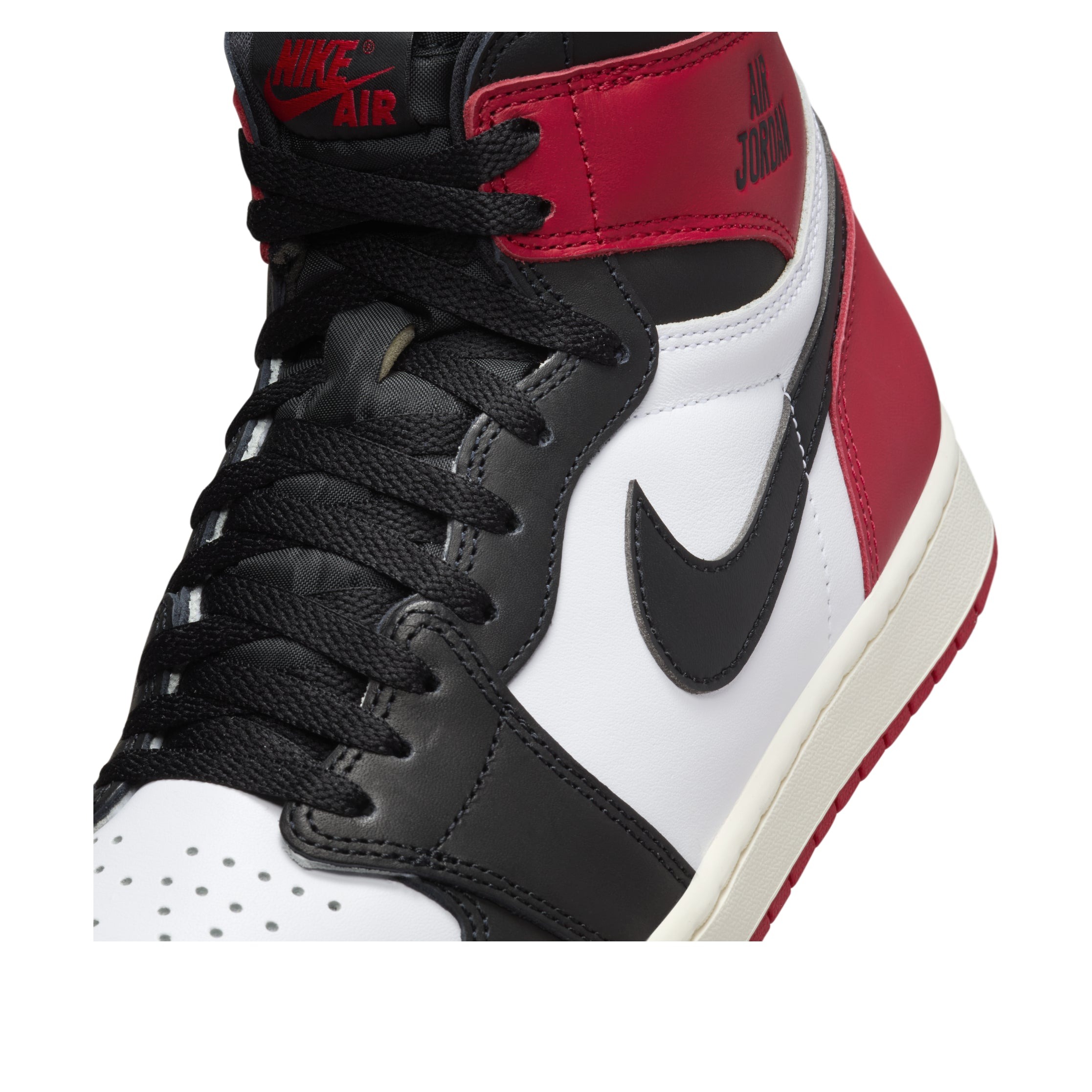 One of the most recognizable Air Jordan 1 colorways is given a new look with the Jordan 1 Retro High OG Black Toe Reimagined. The original 1985 release that contributed to the formation of sneaker culture is referenced by the black, varsity red, and white color scheme. This revised version, however, adds a contemporary edge to a timeless style with a number of unique modifications. The modest yet noticeable modification of the conventional wings logo on the collar to „Air Jordan“ text is one of the most notable aspects.