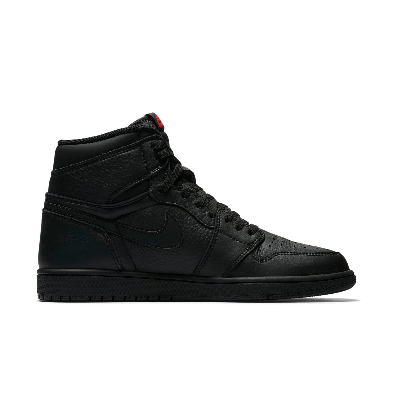 The Air Jordan 1 Retro High OG Black features a clean and monochromatic black colorway, giving it a timeless and sophisticated look. The shoe is crafted with high-quality leather materials, offering durability, a luxurious feel, and a premium aesthetic. The shoe features a high-top design that provides ankle support and stability. The sneaker retains the iconic design elements of the original Air Jordan 1, including the Nike Swoosh branding, wings logo, and perforated toe box. The Swoosh is covered in black on both the medial and lateral sides while a red Nike tad is printed on its tongue.What our experts love about the shoe is that it incorporates Nike Air cushioning technology in the midsole for responsive and comfortable cushioning, ensuring a comfortable stride throughout the day. The shoe features a rubber outsole with a patterned tread, providing excellent traction and grip on different surfaces for enhanced durability and stability. The Air Jordan 1 Retro High OG Black released on 1st August 2017 retailed at $160.