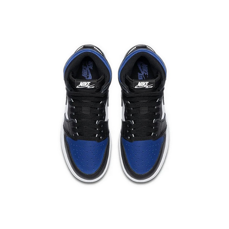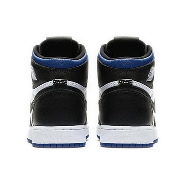 The Jordan 1 Retro High Royal Toe (GS) features a white and royal blue leather upper with black overlays and black, textured Swooshes. From there, a tapered outsole and a white Air Jordan Wings logo near the heel complete the design.The Jordan 1 Retro High Royal Toe (GS) released in May of 2020 and retailed for $170 USD.
