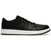 The Jordan 1 Retro Low Golf Black Croc was released in 2023 as part of the Jordan Brands golf collection. The Black Jordan 1 Retro Low Golf Croc has a durable rubber outsole with a unique outsole pattern that maximizes traction and stability on the course. The shoes midsole features Nikes proprietary Air technology, providing ample cushioning and support for the golfers feet. The shoe is also equipped with a removable and interchangeable spikes system, which allows golfers to adjust their traction depending on course conditions. The spikes are made with durable TPU materials that provide ample grip on the courses grass or terrain, ensuring that golfers can take a precise swing without slipping or losing balance. What we like the most about the Jordan 1 Retro Low Golf Black Croc? Its without a doubt its premium black crocodile leather upper, which gives the shoe a bold, luxurious look. The leather is water-resistant and provides ample protection to the foot during damp weather conditions. The shoe was released on January 7th, 2023 at a retail price of $140.