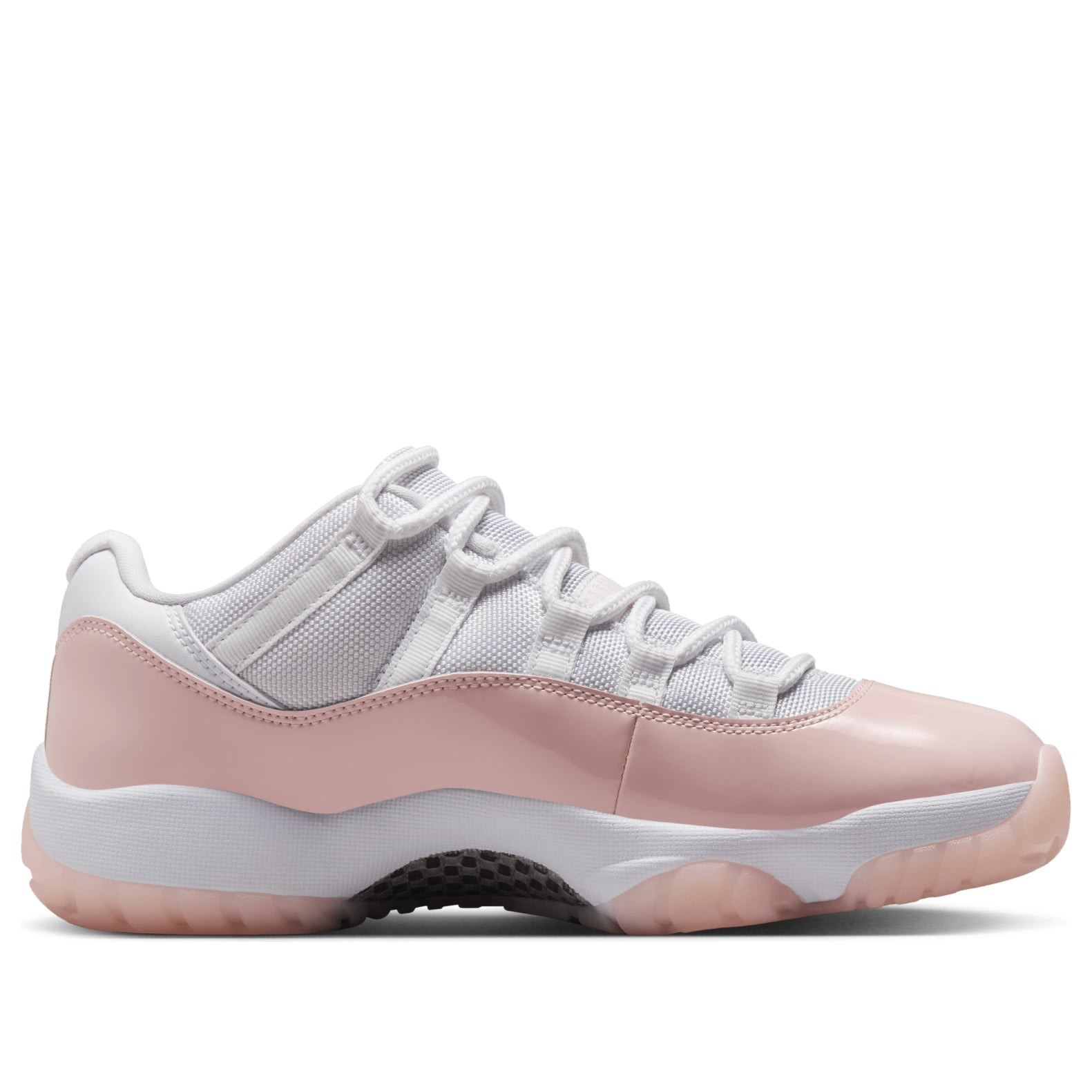 The Jordan 11 Retro Low Legend Pink (Women’s) adds a soft colorway of white and Legend Pink to the classic Air Jordan 11 Retro Low silhouette.The upper is crafted from durable ballistic mesh in white with tonal webbing eyelets that create a lace cage. A patent leather mudguard in Legend Pink wraps around the shoe and shines when hit by light. A full-length Air-sole unit provides lightweight cushioning, while a semi-translucent rubber outsole grips the ground and provides an additional splash of Legend Pink. In the midfoot, a carbon fiber shank provides additional stability without weighing down the sneaker.Our experts at Newsole like the tonal stitches that attach the Legend Pink mudguard to the upper because they create a seamless transition between pink and white. The women s sized Jordan 11 Retro Low Legend Pink (Women’s) was released on June 22, 2024, and retailed at $190.