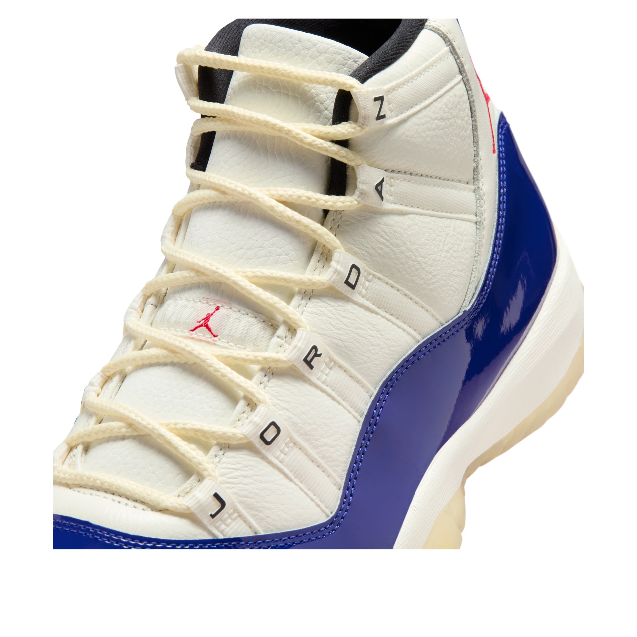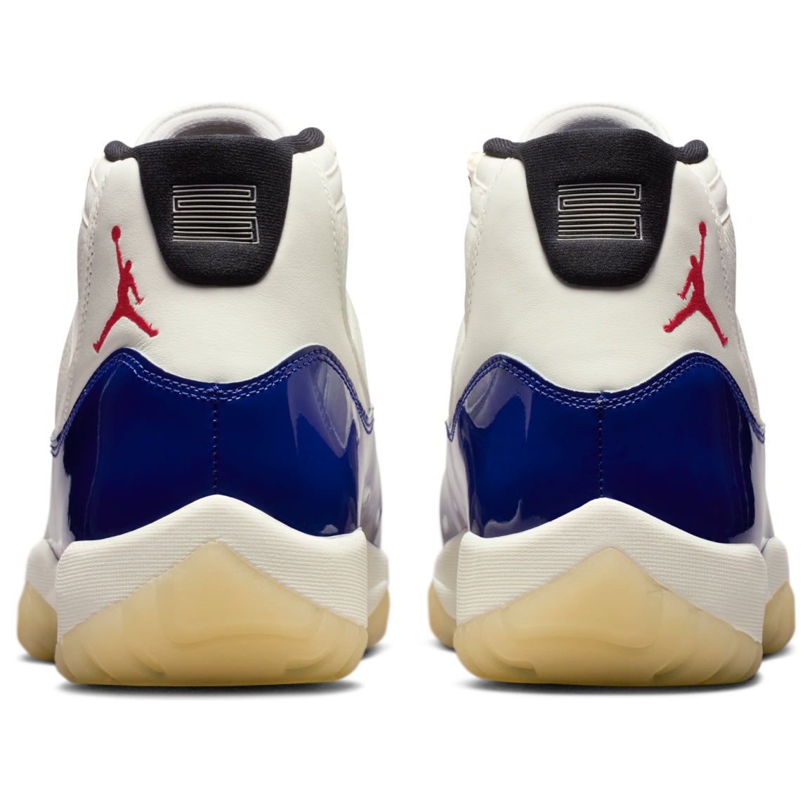 The Jordan 11 Retro Rare Air features a Deep Royal Blue/Fire Red/Sail/Black/Muslin colorway. This Jordan 11 Retro was first released for $230 on October 01, 2025.