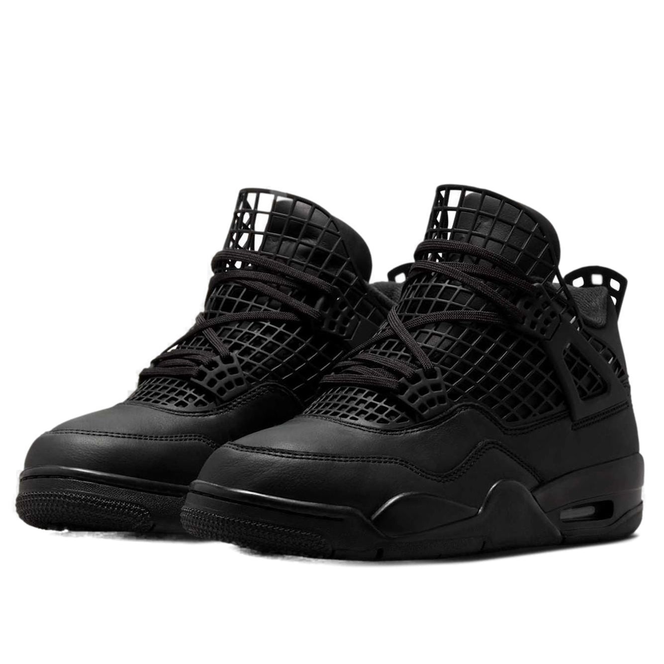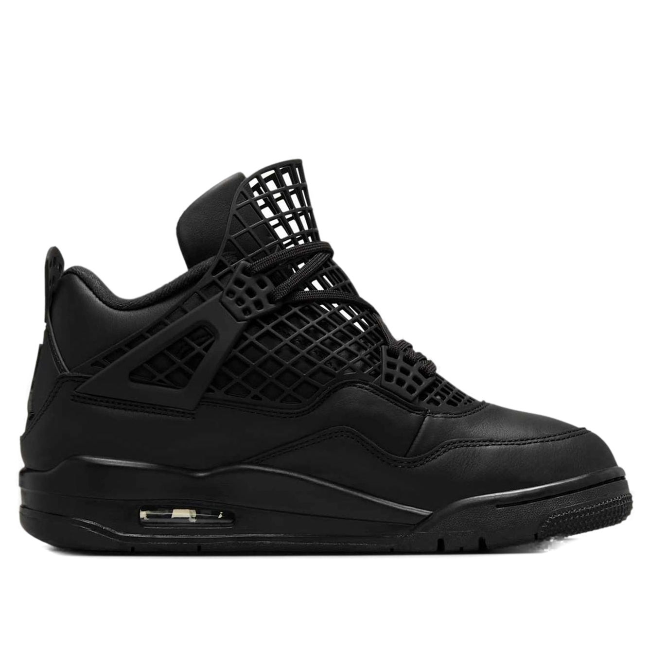 The Jordan 4 Retro Net Black (Women’s) sneakers combines comfort with chic black-metallic silver details. The upper and back heels are overlayed with mesh, and the thick soles feature patterned details. The women s Jorden 4 Retro sneakers feature a mix of premium leather and breathable mesh netting on the all-black upper. The sole features a visible Air cushioning, and the iconic Jumpman logo is on the heel. As part of the Jordan Brand legacy, the Jordan 4 Retro Net Black continues to bridge athletic innovation with fashion-forward design. What we think sets these sneakers apart are the signature design elements that elevate its aesthetic, like the sophisticated plastic wing eyelets and the bold black colorway. The subtle textural contrasts of the mesh details and the sole elevate its streetwear appeal. The Jordan 4 Retro Net Black (Women s) sneakers released on February 26, 2025, retailed at $210.