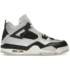 The Jordan 4 Retro Platinum Gold (GS) is a shoe for kids, grade school sizing, applying pure platinum, metallic gold, black, and sail color blocking and presenting in the Jordan 4 Retro silhouette from Nike.The Retro Air Jordan 4 boasts luxurious detailing for grade-school aged children wanting a sneaker with a sophisticated look. The upper is a mix of synthetic and real leather and is dressed in pure platinum. Black basketball net inspired panels adorn the side panels and the bottom of the tongue. Reinforced eyelets connected to an ankle cage add additional support. Sail laces and a sail midsole add some lightness to the design.If we had to select one feature of the Jordan 4 Retro Platinum Gold (GS) that we like the best, it d have to be the hard-to-the-touch metallic gold Jumpman icons on the tongue and heel. They elevate this sneaker and add a touch of luxury. When it hit the shelves on November 1, 2024, this sneaker was priced at $160 retail.