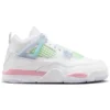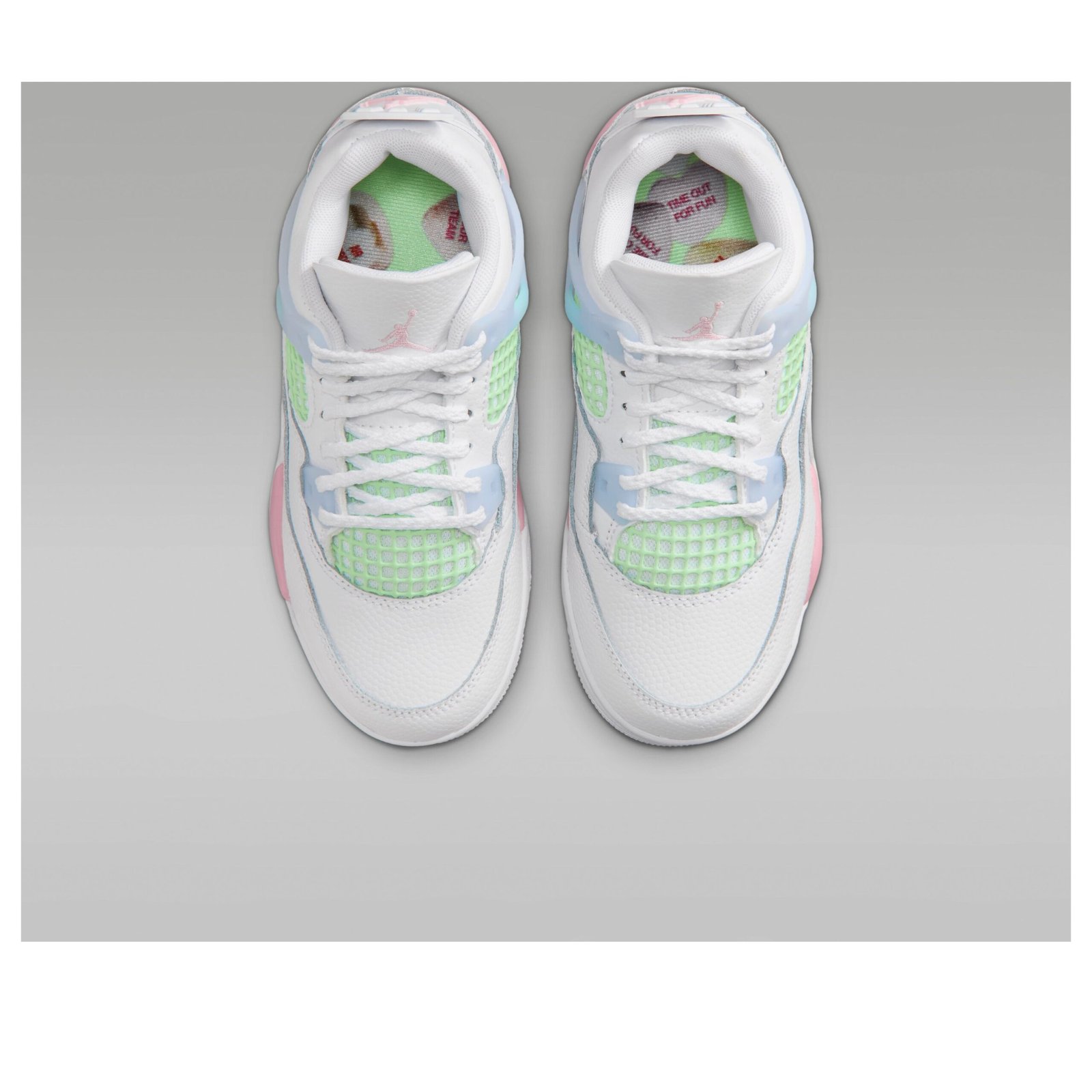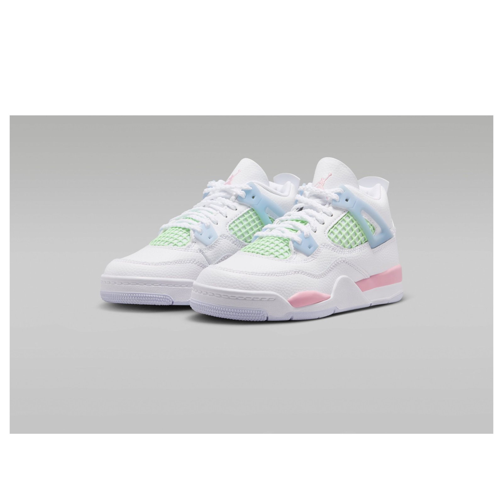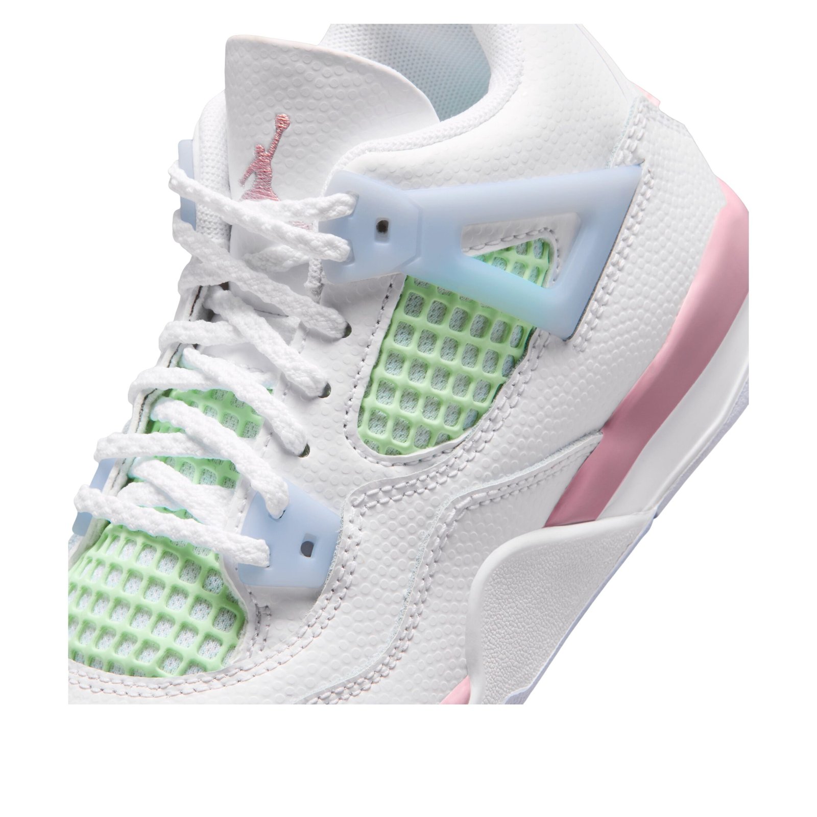 The Jordan 4 Retro Valentines Day (2026) (PS) features a White/Medium Soft Pink/Half Blue/Vapor Green colorway. This Jordan 4 Retro was first released for $105 on February 21, 2026.