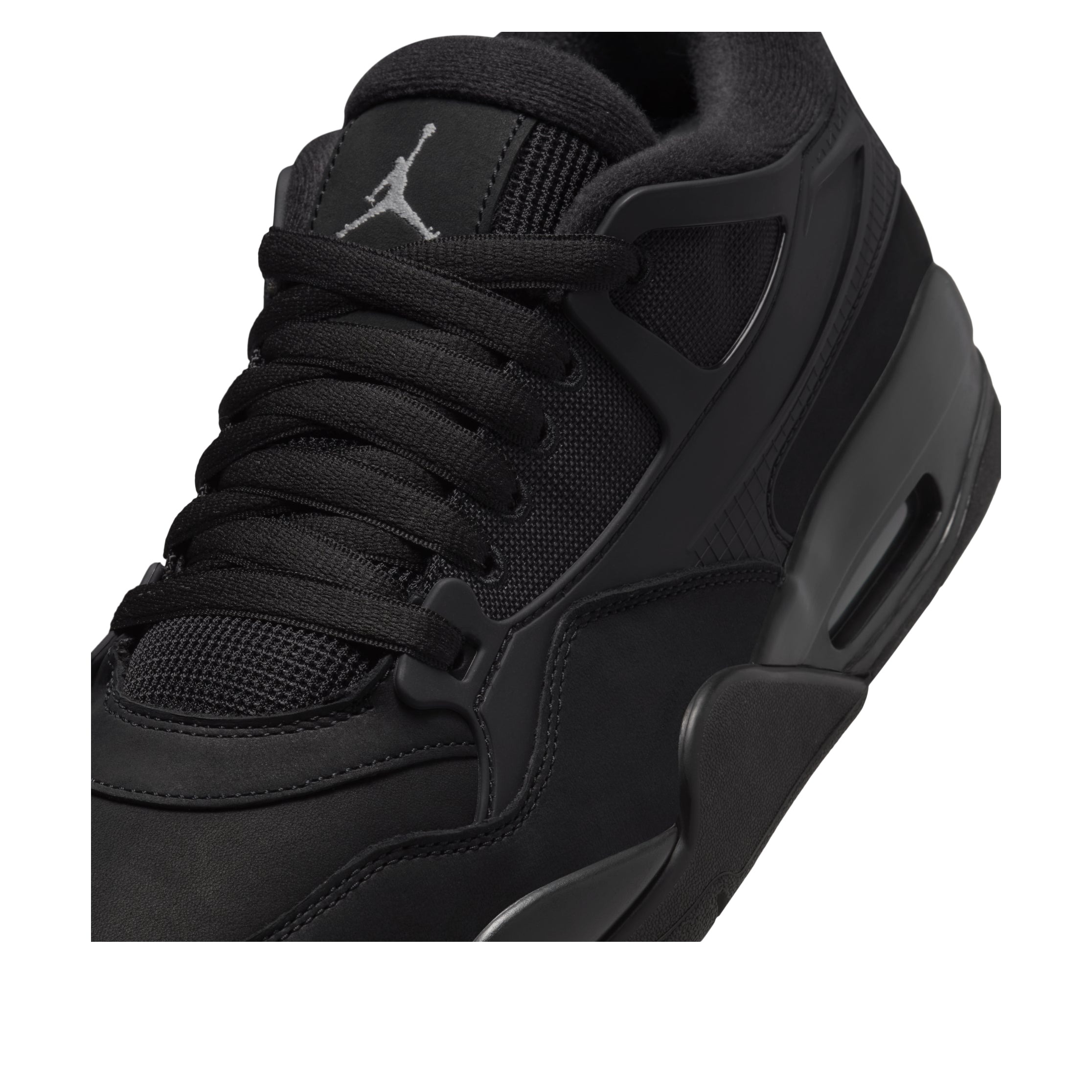 The Jordan 4 RM Black Cat offers a striking, all-black aesthetic inspired by one of Michael Jordan’s nicknames, „Black Cat.“ With a blend of stealthy design and premium materials, this sneaker represents an exciting addition to Jordan Brand’s legacy.The Black Cat 4 RM by Jordan combines polished nubuck leather and breathable mesh for a lightweight upper. It retains classic Jordan 4 features like the visible Air units in the midsole for cushioning, side netting for style and functionality, and a unique lacing system. Released in 2024, this model pays homage to the original Air Jordan 4 from 1989 while updating it with reflective details to enrich the monochrome design.As experts, we enjoy the Jordan 4 RM Black Cat’s multidirectional rubber outsole, which offers exceptional grip for urban or athletic settings. Additionally, the responsive Air cushioning improves comfort for all-day wear. This sneaker was released on November 5th, 2024, and retailed for $150.