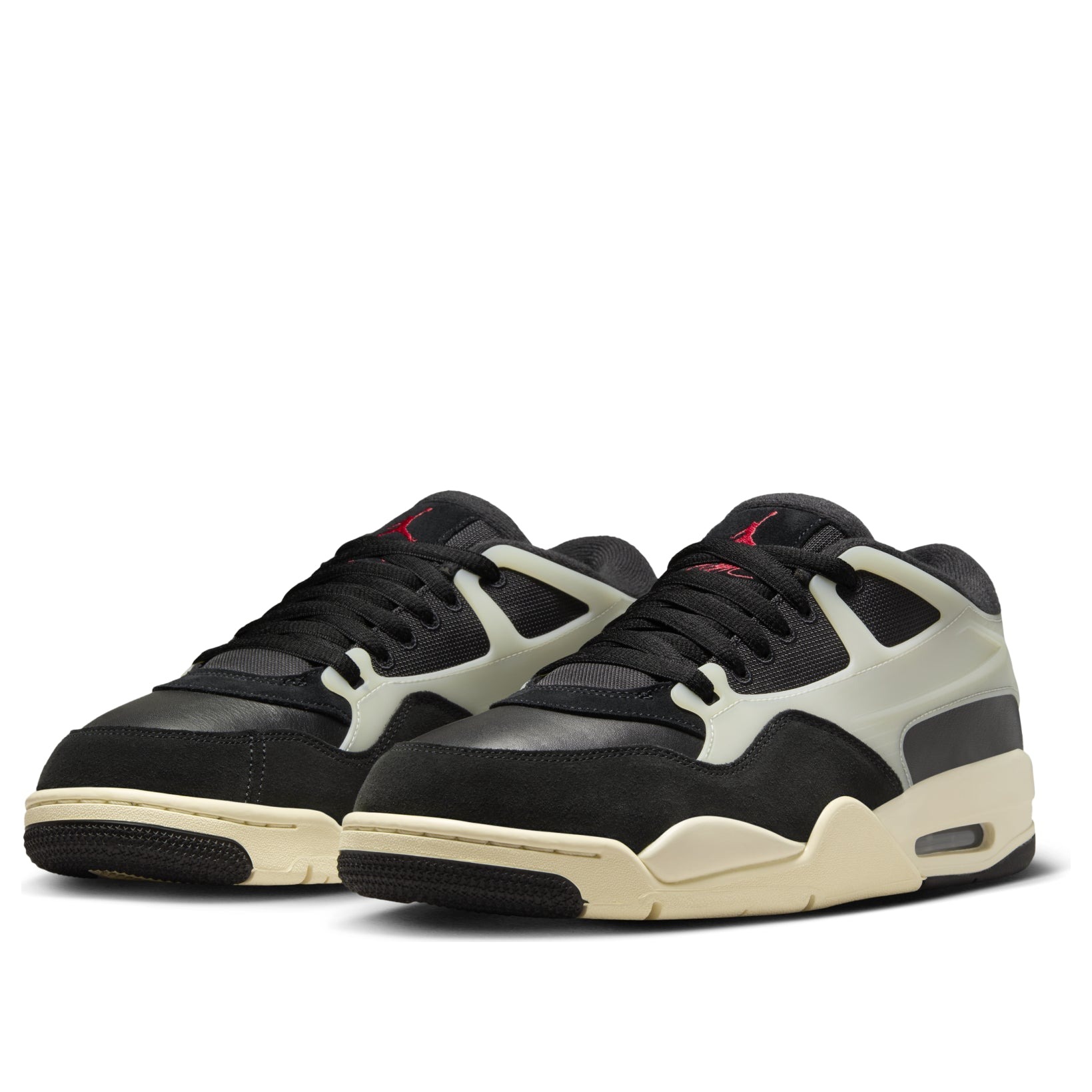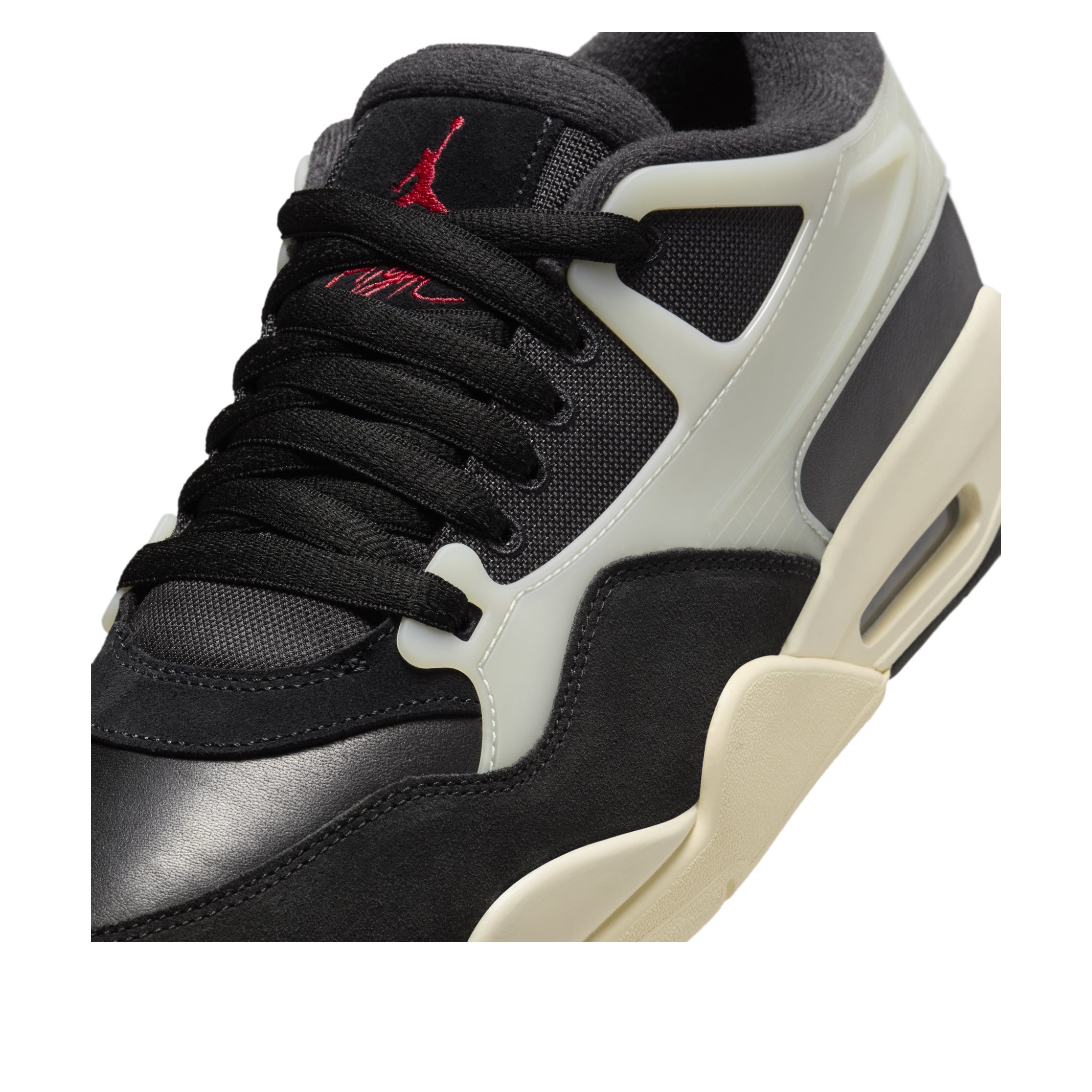 The Jordan 4 RM Black Sail features a Black/Gym Red/Sail/Coconut Milk colorway. This Jordan 4 RM was first released for $150.