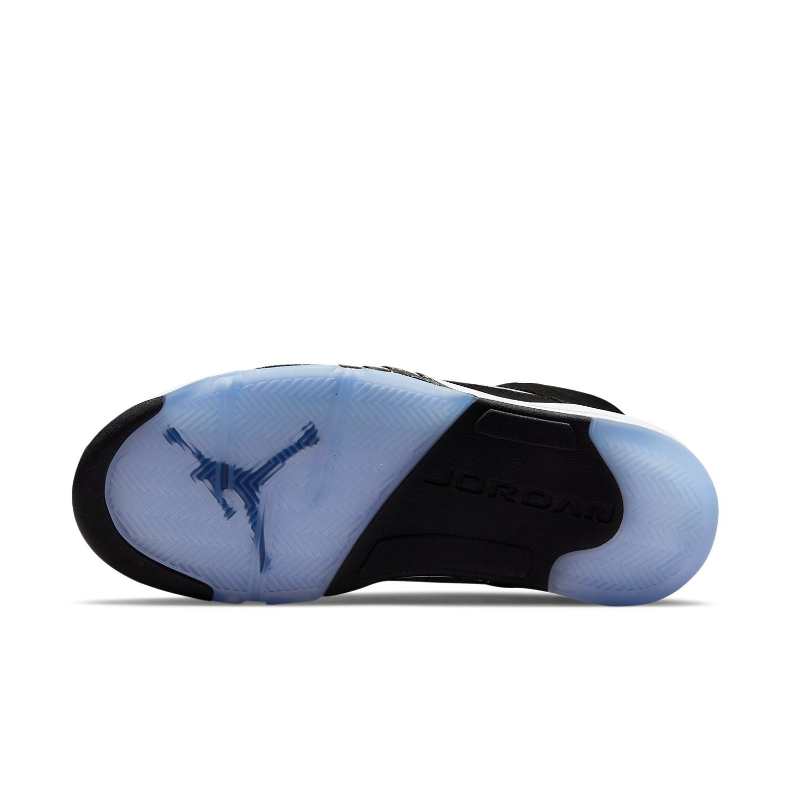 The Air Jordan 5 Moonlight arrives looking identical to the original 2013 Jordan 5 Oreo. It features a black Durabuck upper with translucent netted inserts and grey embroidered Jumpman logos on the tongue. From there, a white midsole with black speckled shark teeth and an icy translucent sole brings a contrast to the monotone upper.The Air Jordan 5 Moonlight released in September of 2021 and retailed for $190.