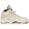 The Jordan 5 Retro SE Sail (GS) combines heritage Air Jordan 5 details with a contemporary, neutral colorway of Sail, Light Orewood Brown, Coconut Milk, and black.The smooth upper of the Sail (GS) Jordan 5 Retro SE is crafted from leather in Sail with layered overlays and tonal netting on the quarter panels. The synthetic lining comes in black, contrasting the creamy white upper and giving the shoe a modern feel. Classic Air Jordan 5 elements include the locked laces, semi-translucent outsole, and shark tooth designs along the midsole. These designs draw inspiration from WWII fighter planes and come in black with a speckled pattern. The polyurethane midsole houses an Air-sole unit in the heel and provides responsive cushioning, while the semi-translucent outsole in Coconut Milk offers traction.Our experts like the asymmetrical collar, which sculpts around the ankle and gives ergonomic support. The grade school sized Jordan 5 Retro SE Sail (GS) was released on April 13, 2024, and sold for $160.