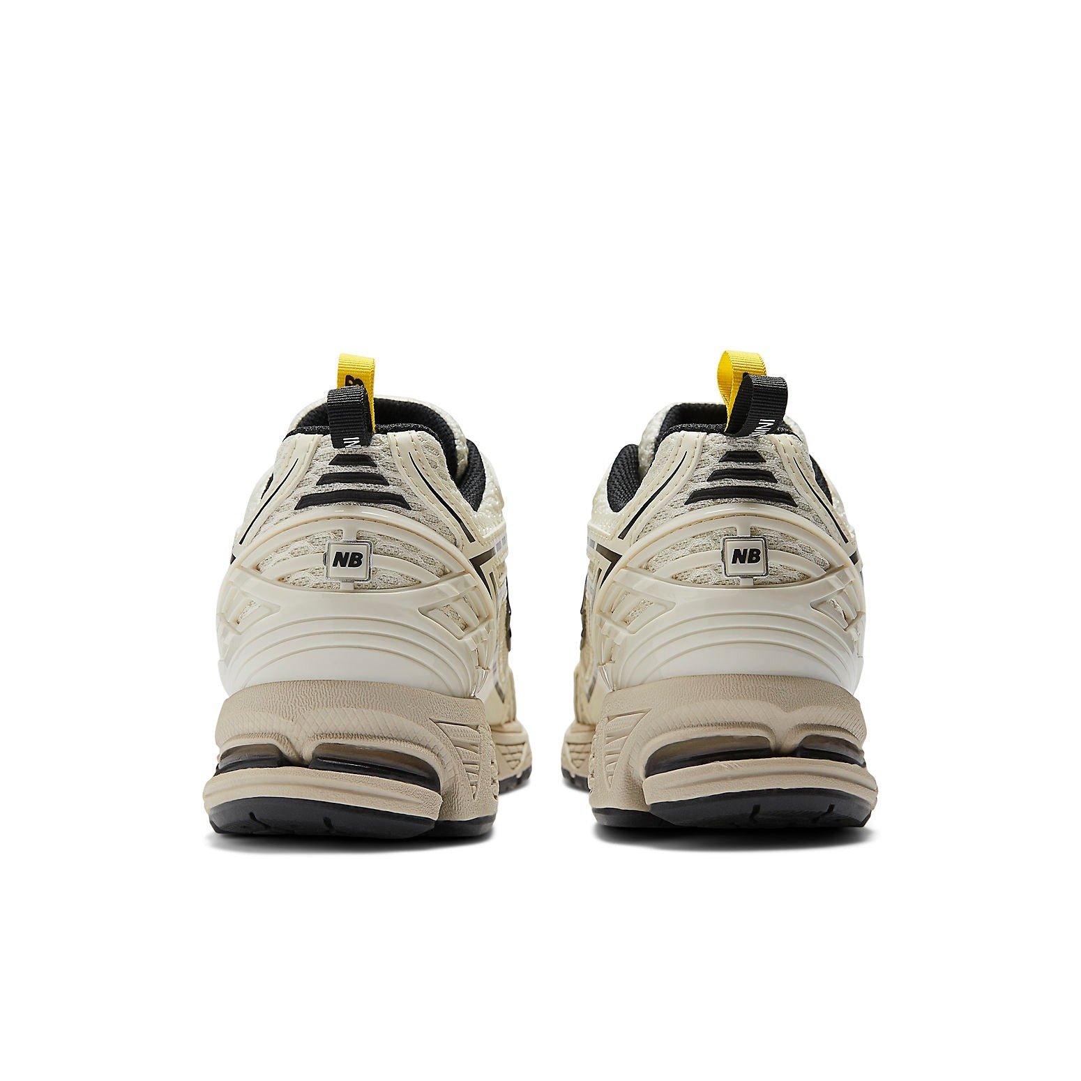 The New Balance 1906R GANNI Egret is a performance sneaker designed as a collaboration with the Copenhagen-based fashion brand GANNI. This version of the New Balance 1906R has an upper made of mesh in an Egret white color. The sections of mesh have different weave patterns for visual interest. White overlays with black accents cross the shoe, supporting the toe box and side panels, as well as the heel and ankle. The New Balance N appears on each side in a bright yellow color, and the heel is supported by Egret TPU containing NB branding in black. GANNI branding is seen on the heel pull tab, while the tongue features dual branding. The midsole is a light-brown color, and the outsole is black. The most interesting features of this shoe are the black accents present on the overlays, which give the shoe more visual interest. The New Balance 1906R GANNI Egret was released on August 18, 2023, for $170 retail.