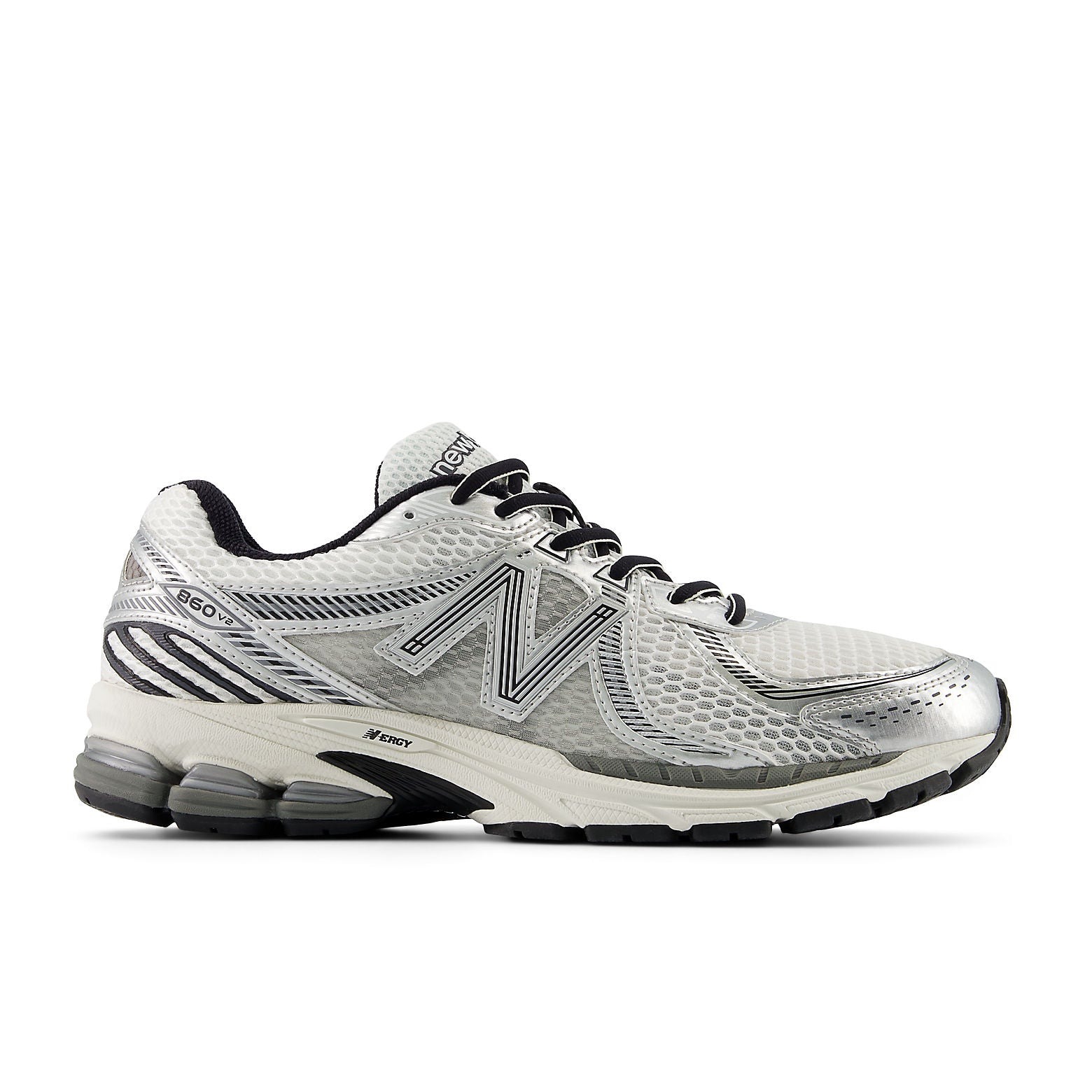 The New Balance 860v2 Milky Way Pack Optic White revives the technical runner silhouette with an updated, bright colorway. The shoe blends Optic White, Silver, and Black. The layered upper, featuring performance mesh and synthetic overlays, maintains the aggressive, structural look of the early 2010s. The N-ergy and ABZORB cushioning systems ensure a responsive and stable ride, fulfilling its technical runner promise. This retro-tech runner was released on February 12, 2024, with a retail price of $140. The dominant Optic White provides a bright, clean base, beautifully contrasted by the technical detailing of Silver on the overlays and the deep grounding of Black on the sole unit. This model balances technical function with a crisp, bright aesthetic. Our team praises the reliable stability and shock absorption provided by the N-ergy and ABZORB cushioning combination, framed by the sharp, clean look of Optic White and Silver.