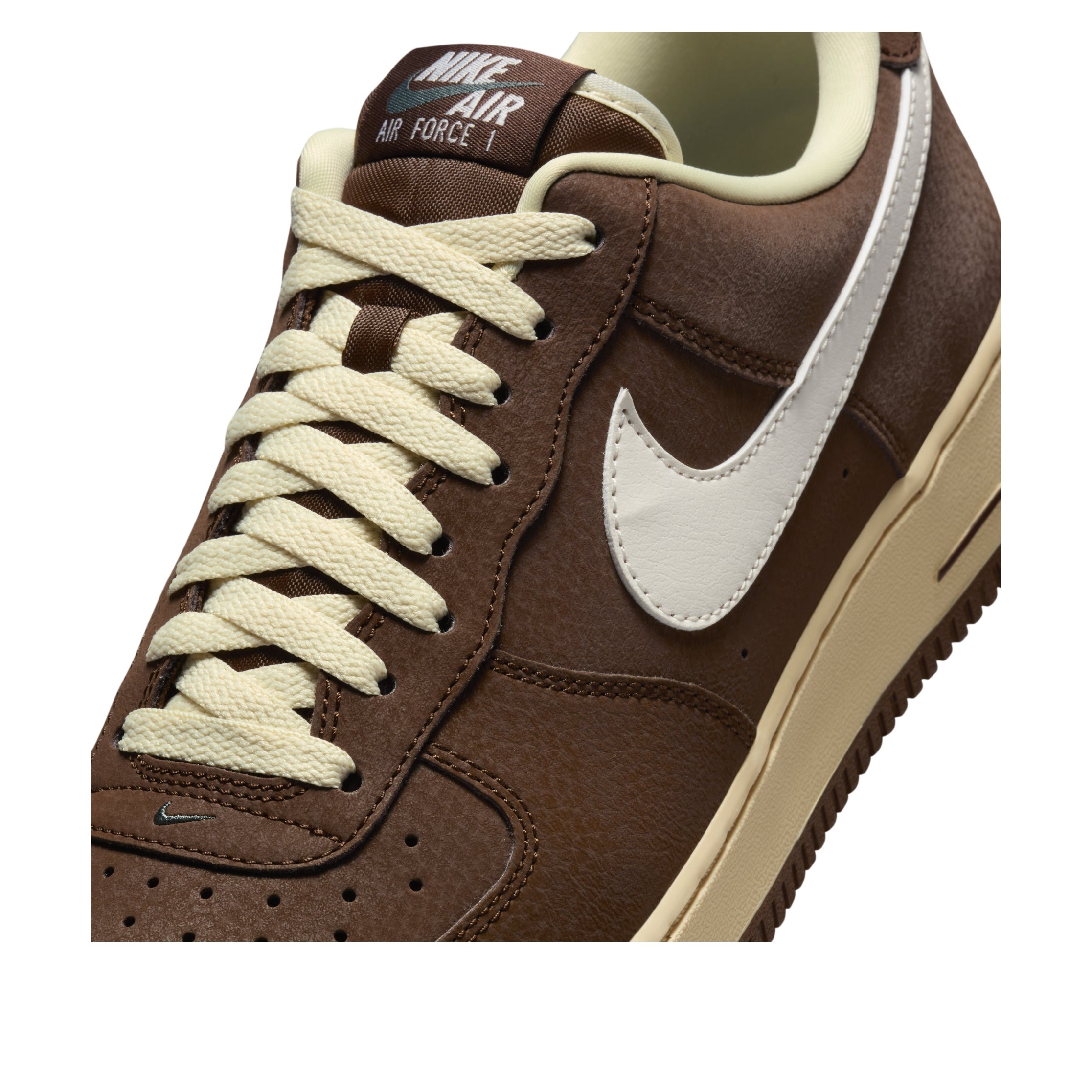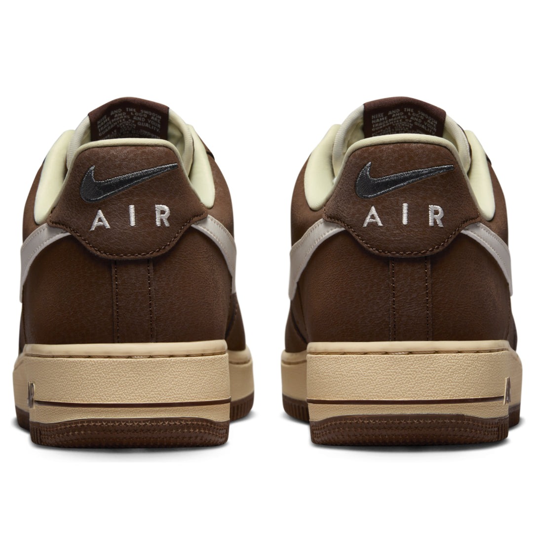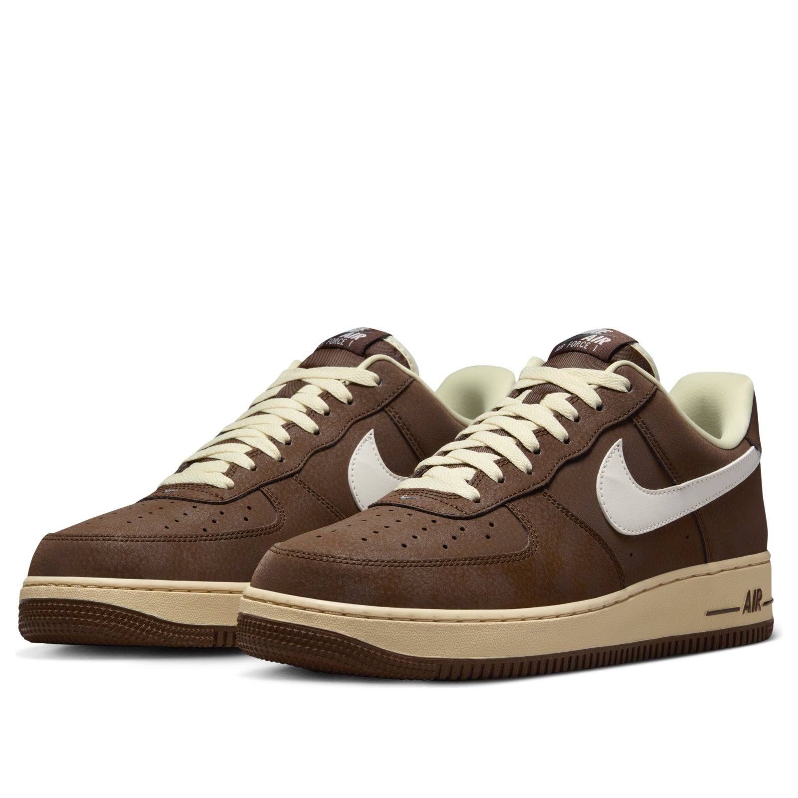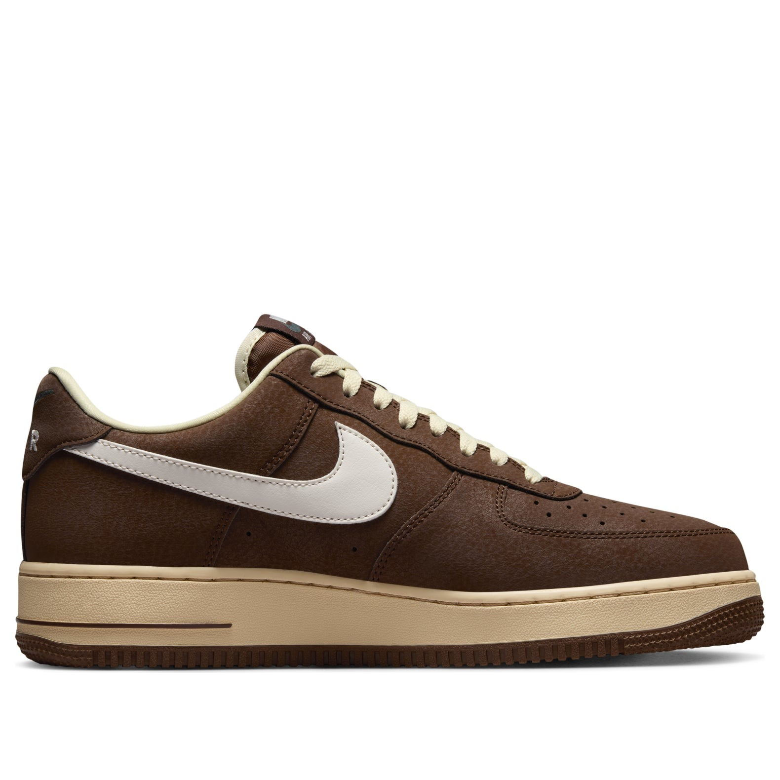 The Nike Air Force 1 Low ’07 Cacao Wow is an eye-catching shoe that calls back to a legend. It delivers the same springy soft bounce that revolutionized sneaker history when this silhouette debuted in 1982 as the first basketball shoe with Nike Air in the midsole.The Cacao Wow iteration of the Nike Air Force 1 Low-Top ’07 features a rich brown upper composed of subtly patterned synthetic leather that offers a slight sheen. Perforations in the toebox that facilitate breathability and the padded collar are both designed to enhance comfort. The tonal mesh tongue sports a Coconut Milk-colored liner that matches both the sock liner and the laces. A midsole constructed from Sail-colored foam rests atop a dark brown rubber outsole that provides multidirectional shock absorption and multi-surface grip. The standout detail of this sneaker that we most enjoy is the side-panel Nike Swoosh. The synthetic white leather offers a bright pop of contrast against the dark brown base of the upper. The Nike Air Force 1 Low ’07 Cacao Wow was released on December 10, 2023, for an original retail price of $115.