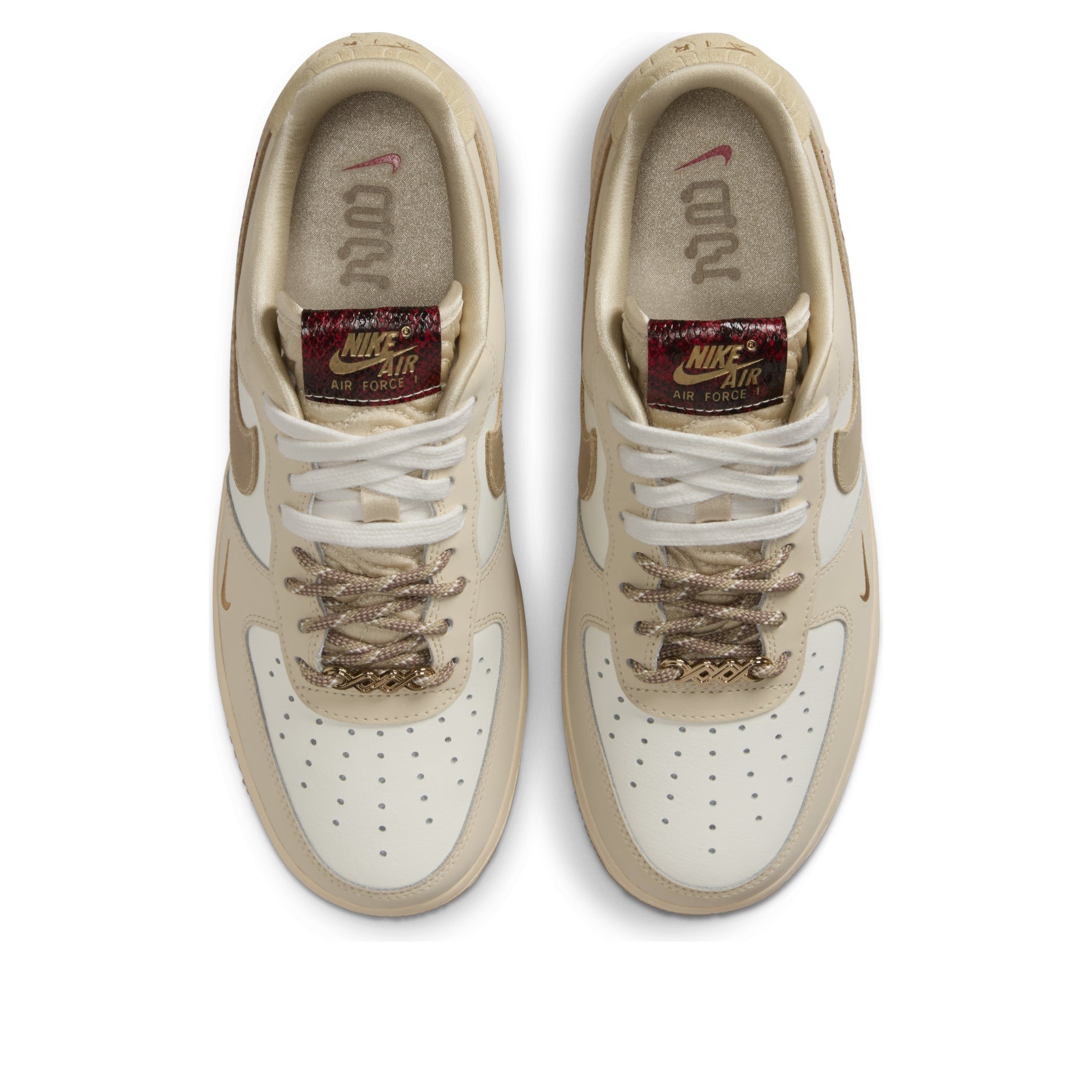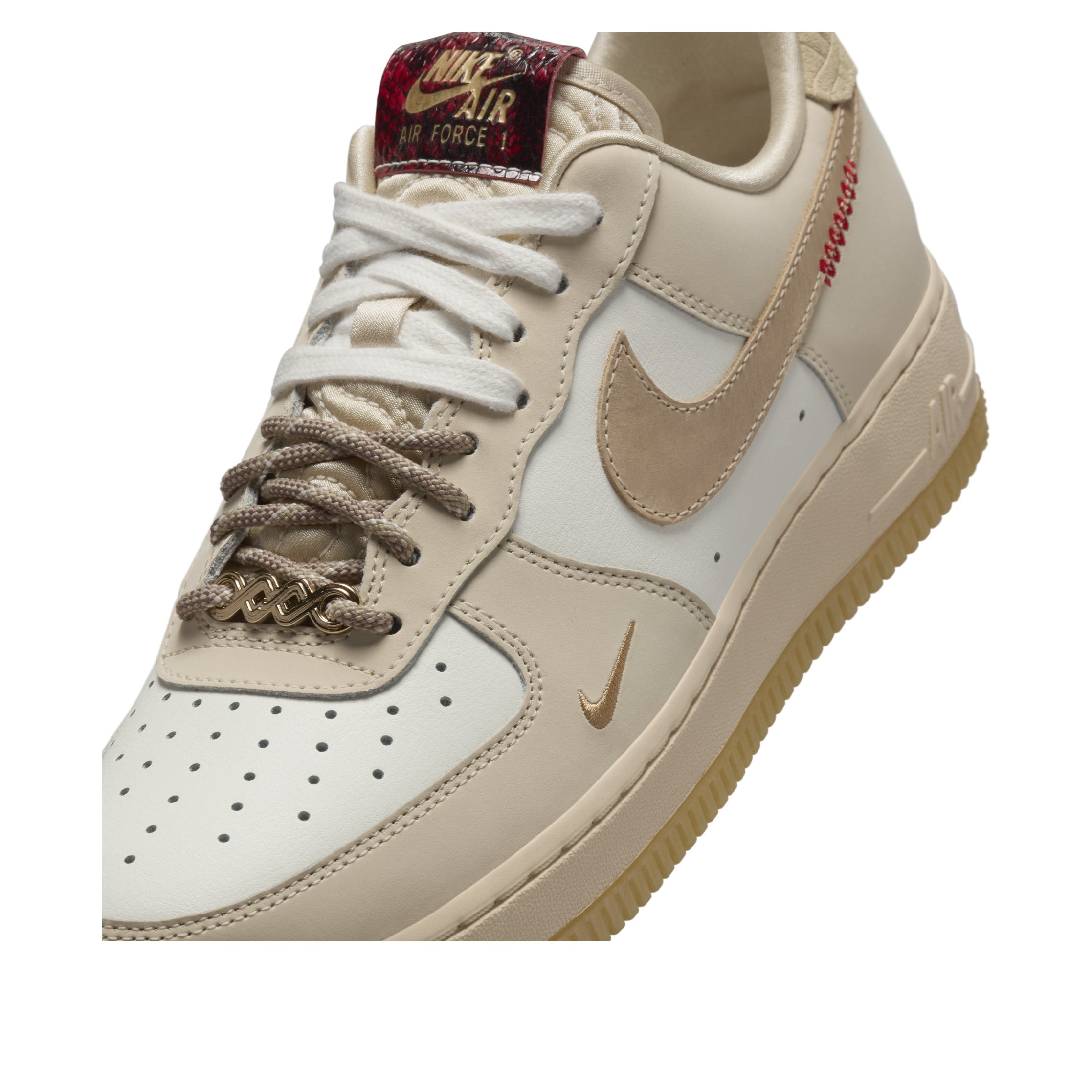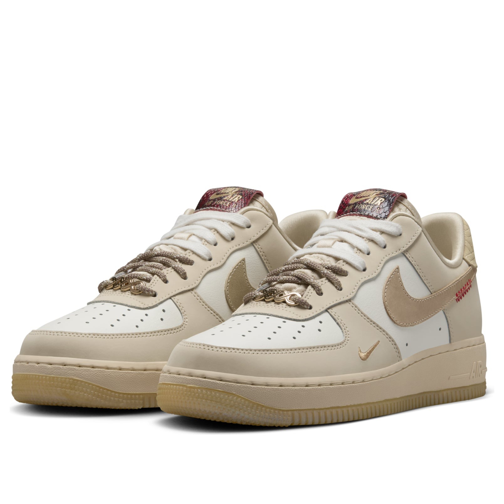 The Nike Air Force 1 Low Year of the Snake (Women’s) features a Sail/Team Gold/Light Khaki/Parachute Beige/University Red/Metallic Gold colorway. This Nike Air Force 1 Low was first released for $135 on December 20, 2024.