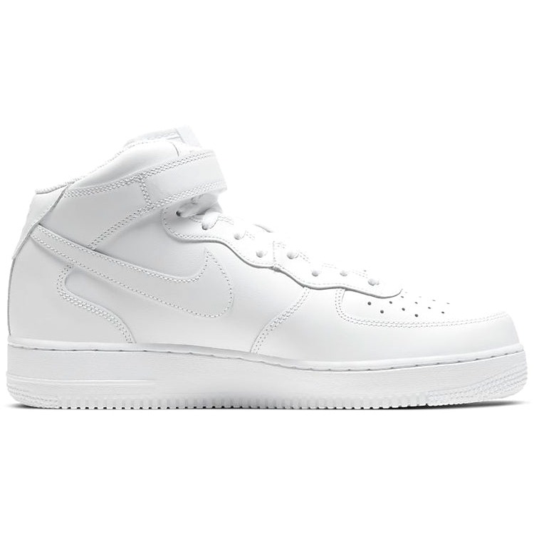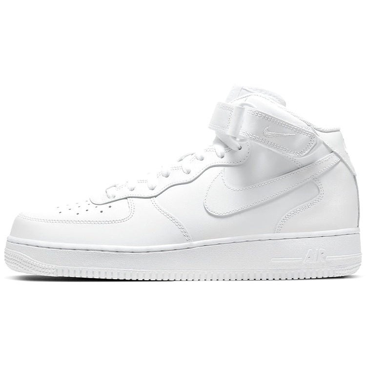 The Nike Air Force 1 Mid White ’07 features a smooth white leather upper with matching overlays and Swooshes. From there, a velcro strap with Nike Swoosh embroidery and a matching Air sole completes the design.The Nike Air Force 1 Mid White ’07 was re-released in December of 2015 and retailed for $95.