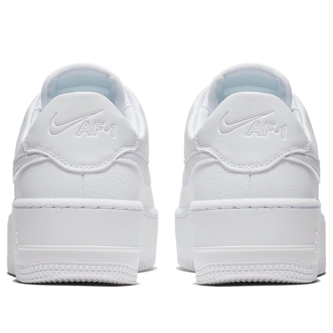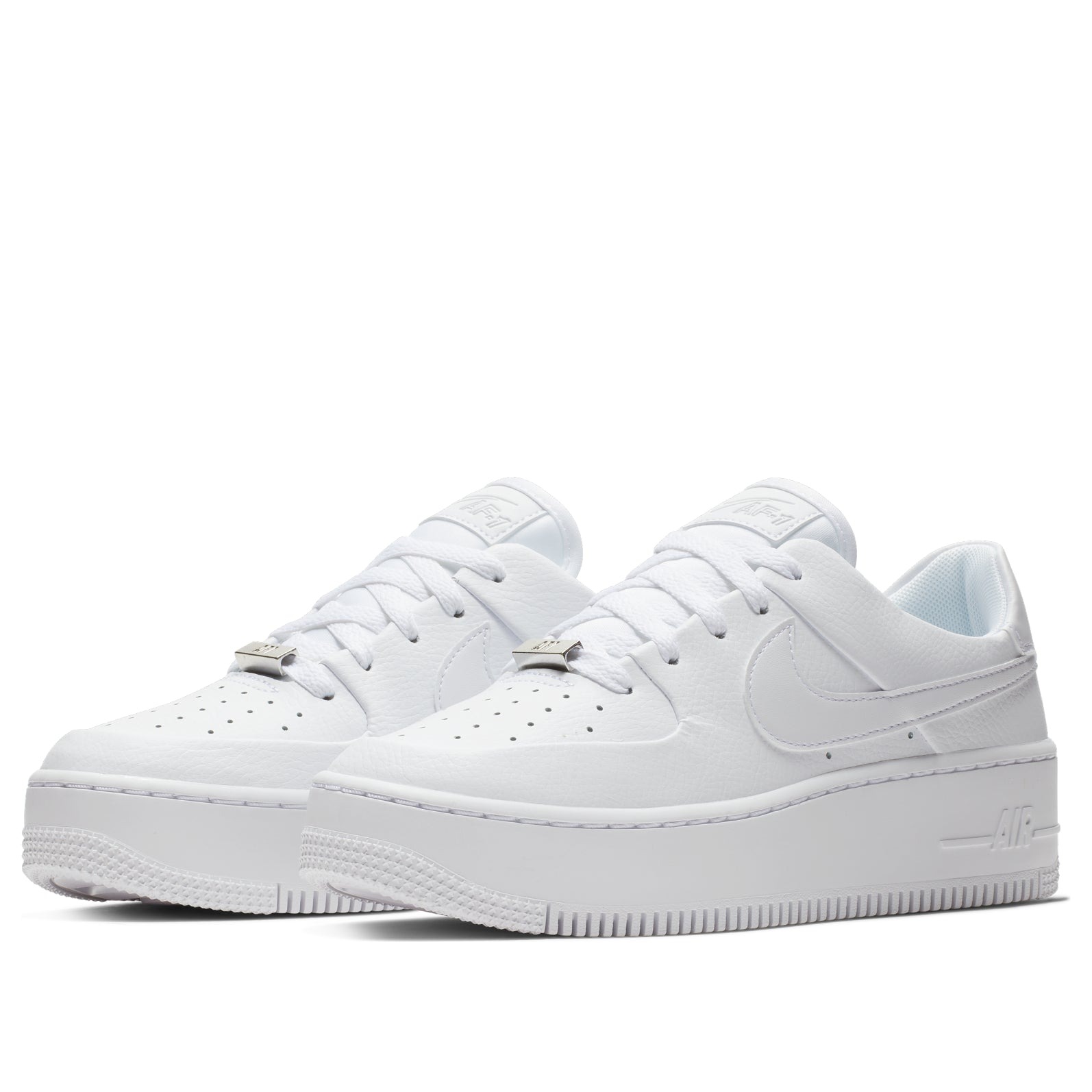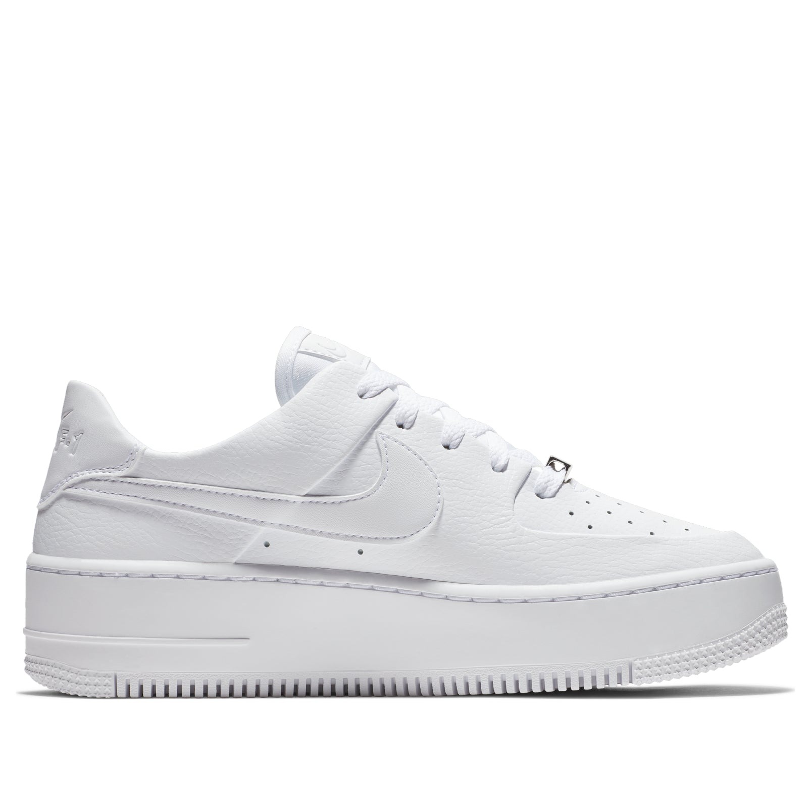 The women s Nike Air Force 1 Sage Low Triple White (W) features an ivory leather upper with matching Swooshes and a perforated overlay on the forefoot. From there, a thick, grooved outsole and a pull tab on the bottom laces complete the design.The women s Nike Air Force 1 Sage Low Triple White (W) released in October of 2018 and retailed for $100.