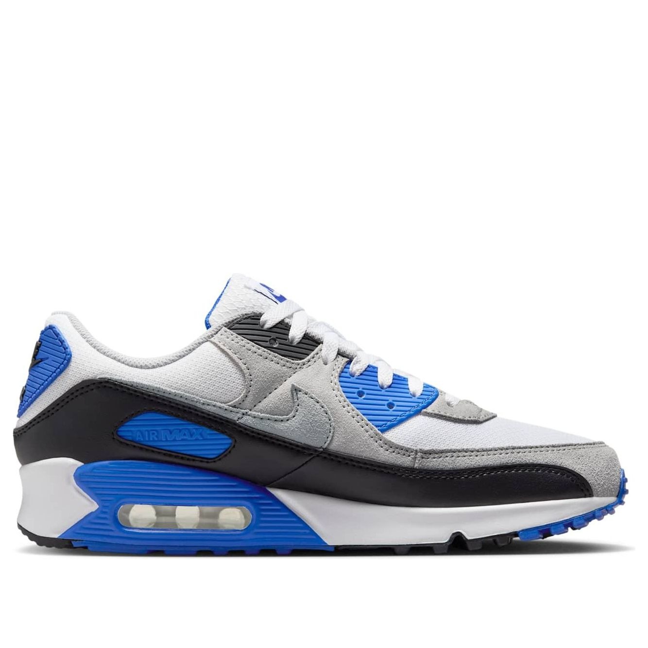 The Nike Air Max 90 Hyper Royal features a White/Light Smoke Grey/Black/Particle Grey colorway. This Nike Air Max 90 was first released for $130 on December 20, 2024.