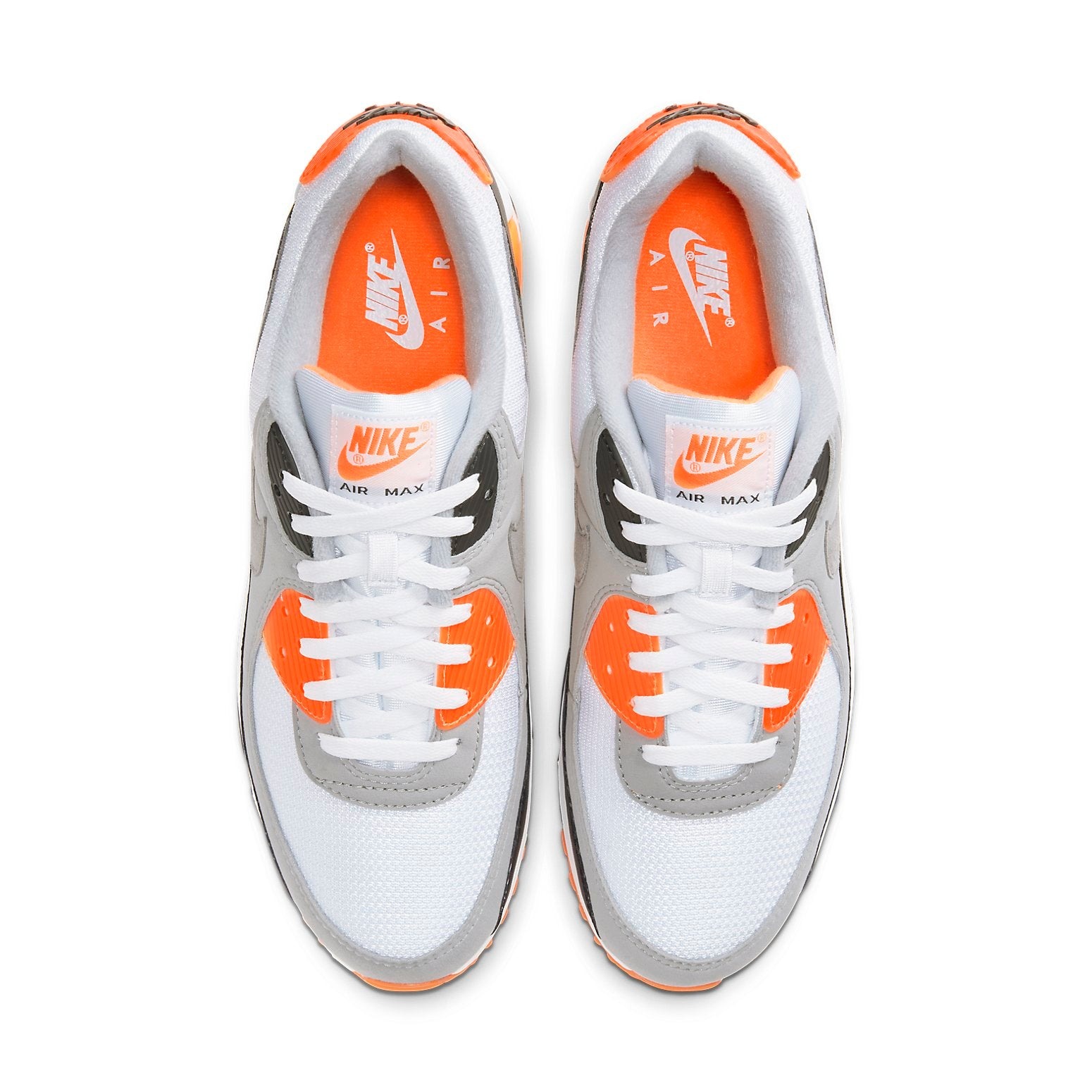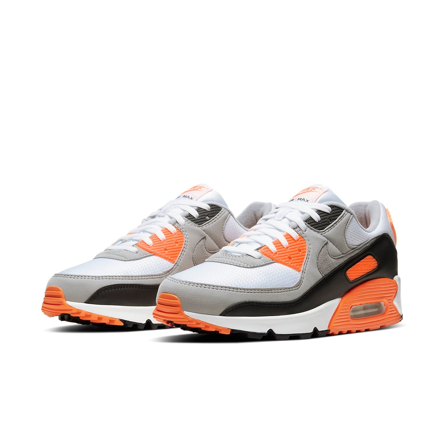 The Nike Air Max 90 Recraft Total Orange is a modern take on the Air Max 90 sneaker in a Total Orange colorway.This shoe features an upper made of a white base with Smoke Grey overlays and a black mudguard. Total Orange on the lower TPU eyestays, outsole tip, heel, tongue branding, the Max Air unit cage, and the AIRMAX branding on the sides accents the upper. Hits of black on the heel branding and upper eyelets provide a contrasting tone. A white midsole and Total Orange outsole complete the design.The Nike Air Max 90 Recraft Total Orange was made available on April 6, 2020 – retailing at $120.
