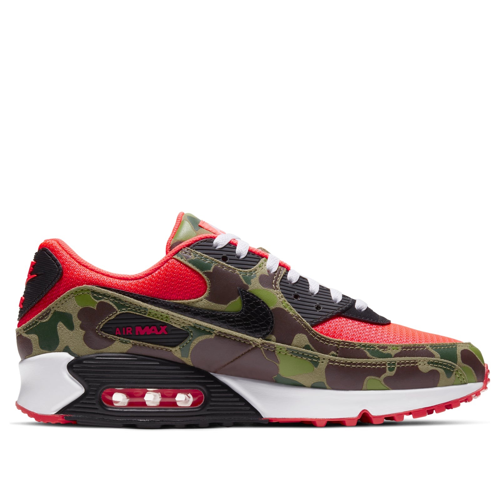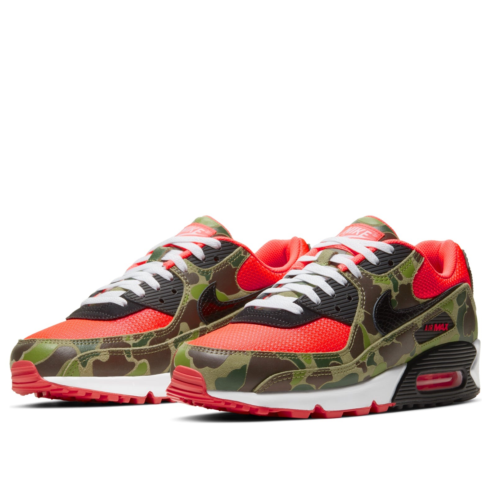 Nike celebrated Air Max Day 2020 by releasing the Nike Air Max 90 Reverse Duck Camo. This colorway is a fresh take on the classic Atmos Air Max 90 design that debuted in 2013.This Air Max 90 consisted of an Infrared mesh upper with a Duck Camo mudguard and black quarter panels. A Nike Air branded heel tab, white midsole, and a mixed infrared and black outsole completes the design. The Nike Air Max 90 Reverse Duck Camo released in March of 2020 and retailed for $140. The Nike Air Max 90 Reverse Duck Camo re-released in September of 2024.