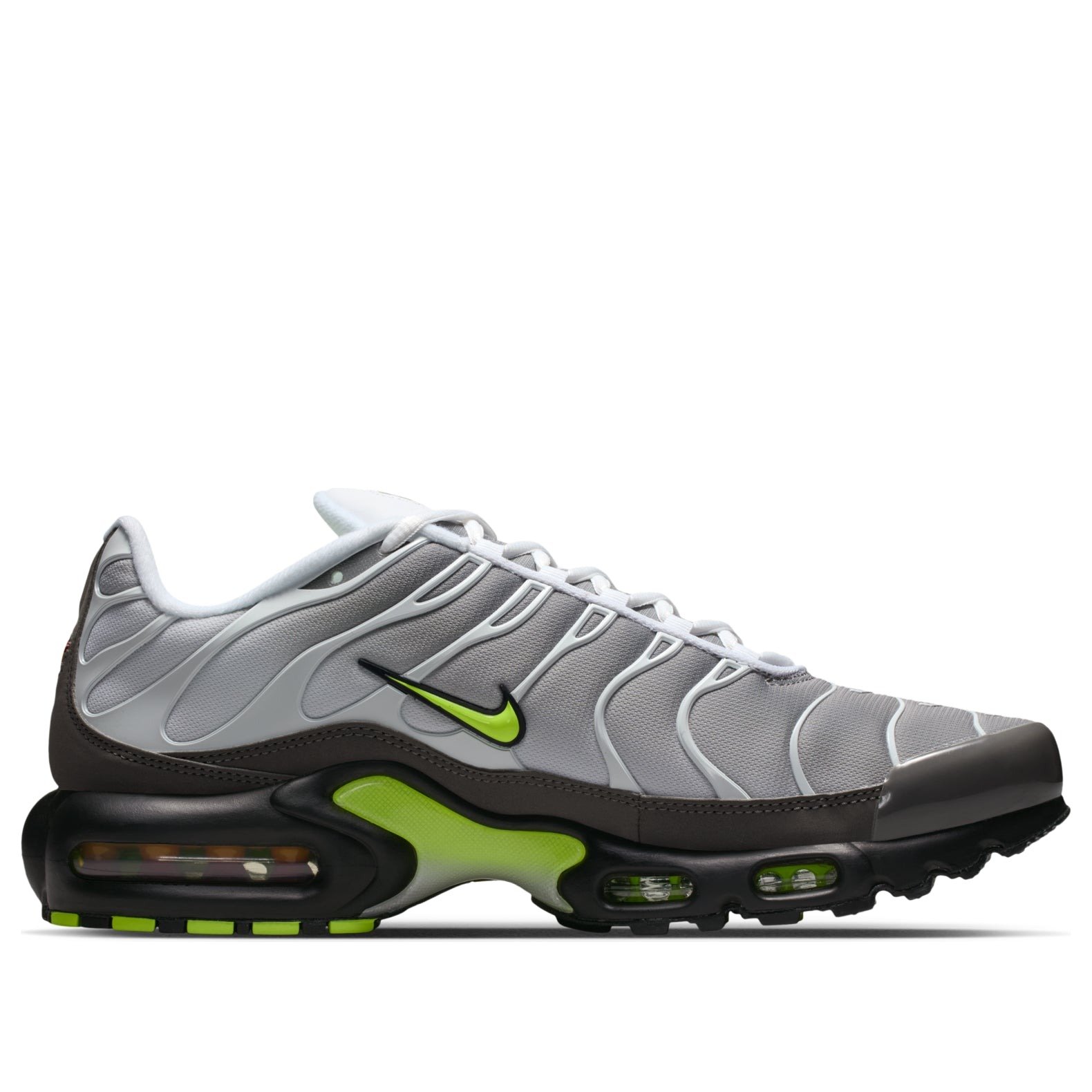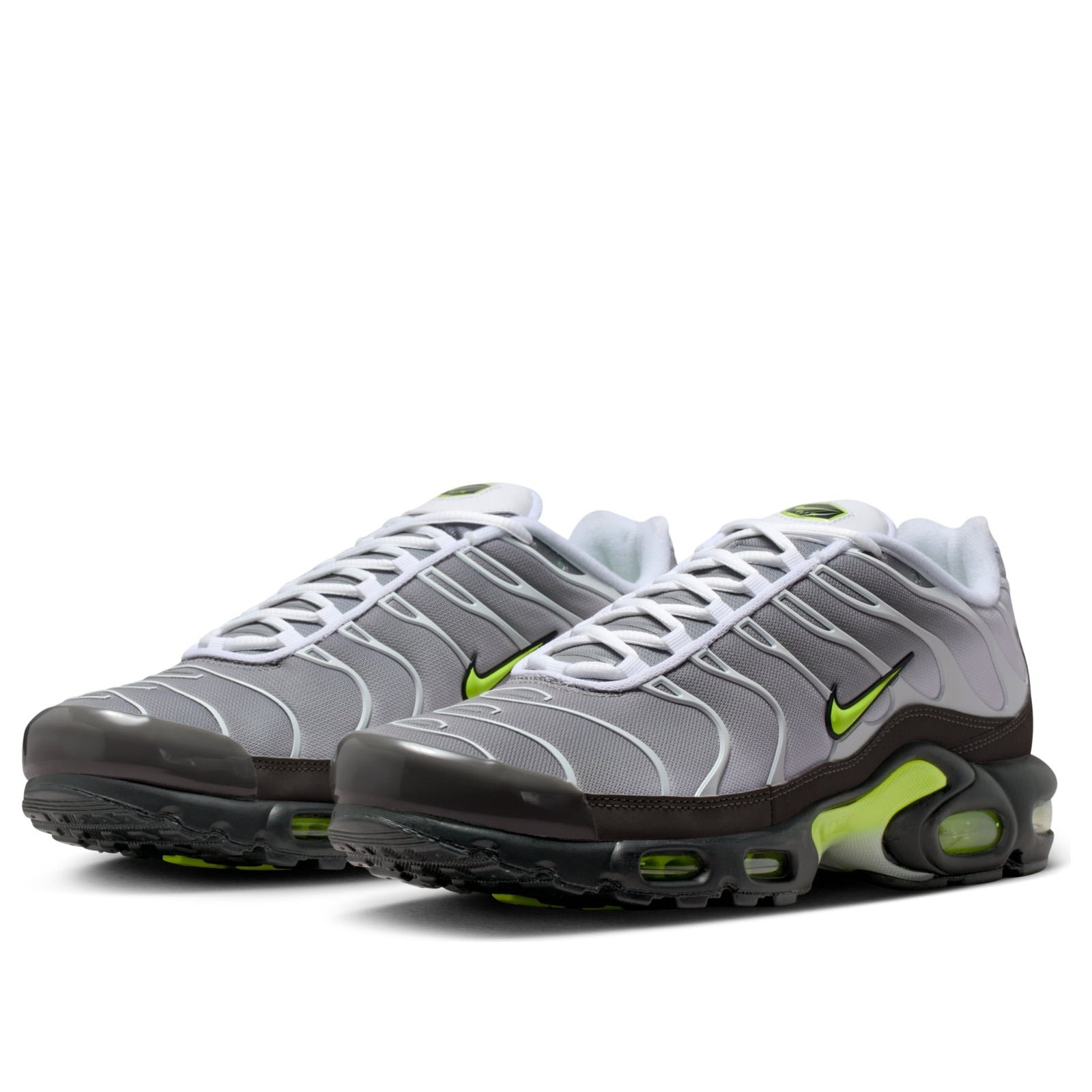 The Nike Air Max Plus Neon features a White/Pearl Grey/Black/Neon Yellow colorway. This Nike Air Max Plus was first released for $190 on February 20, 2026.