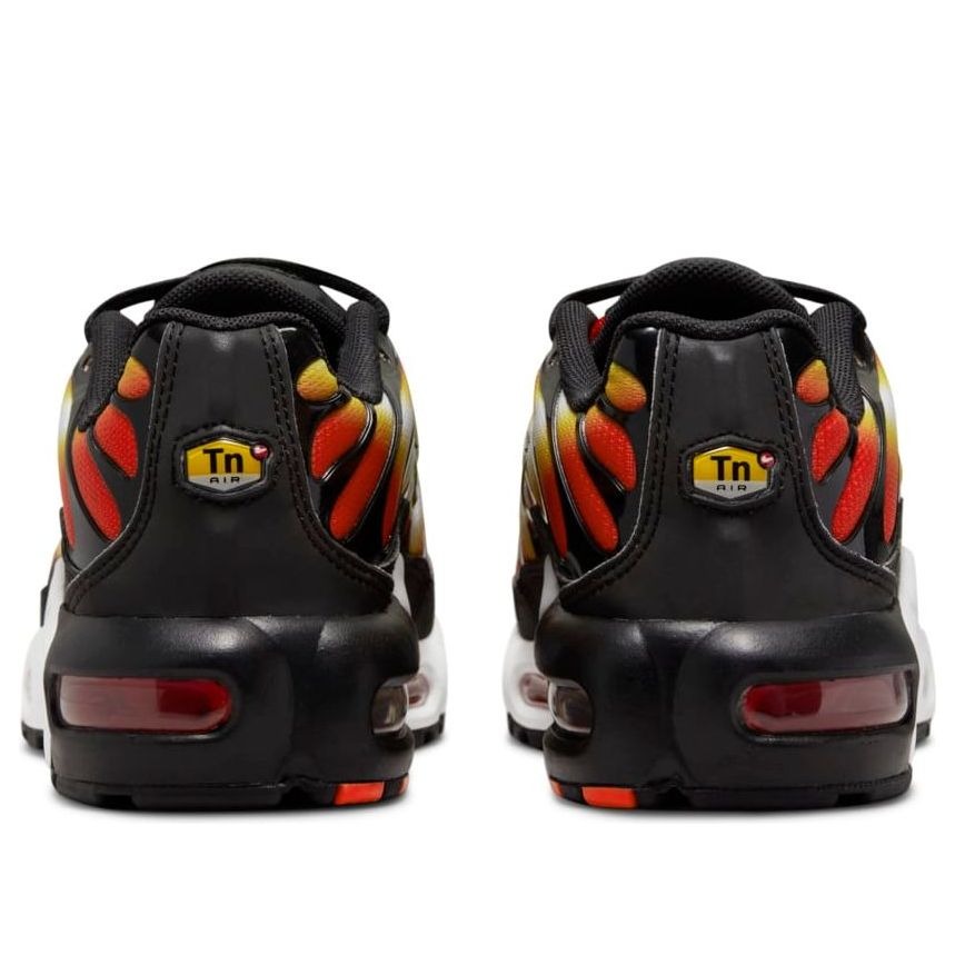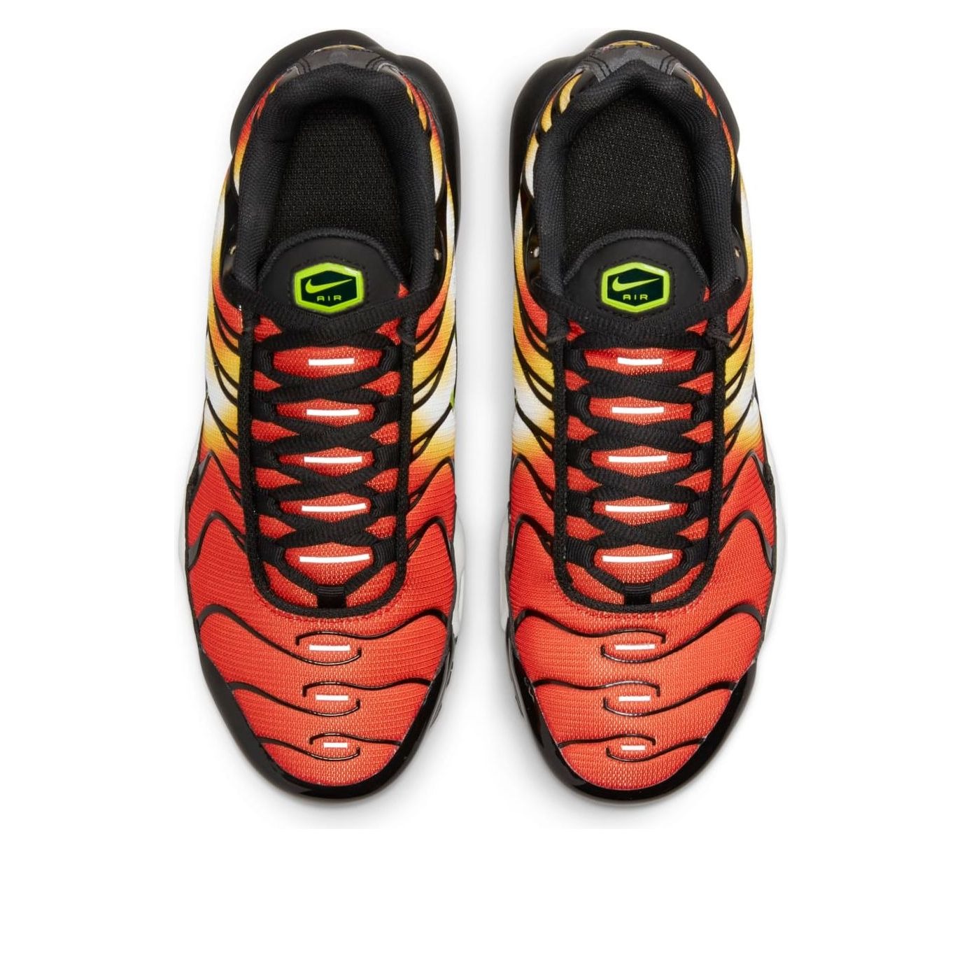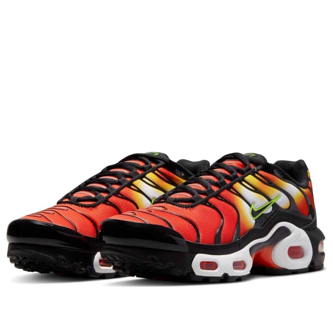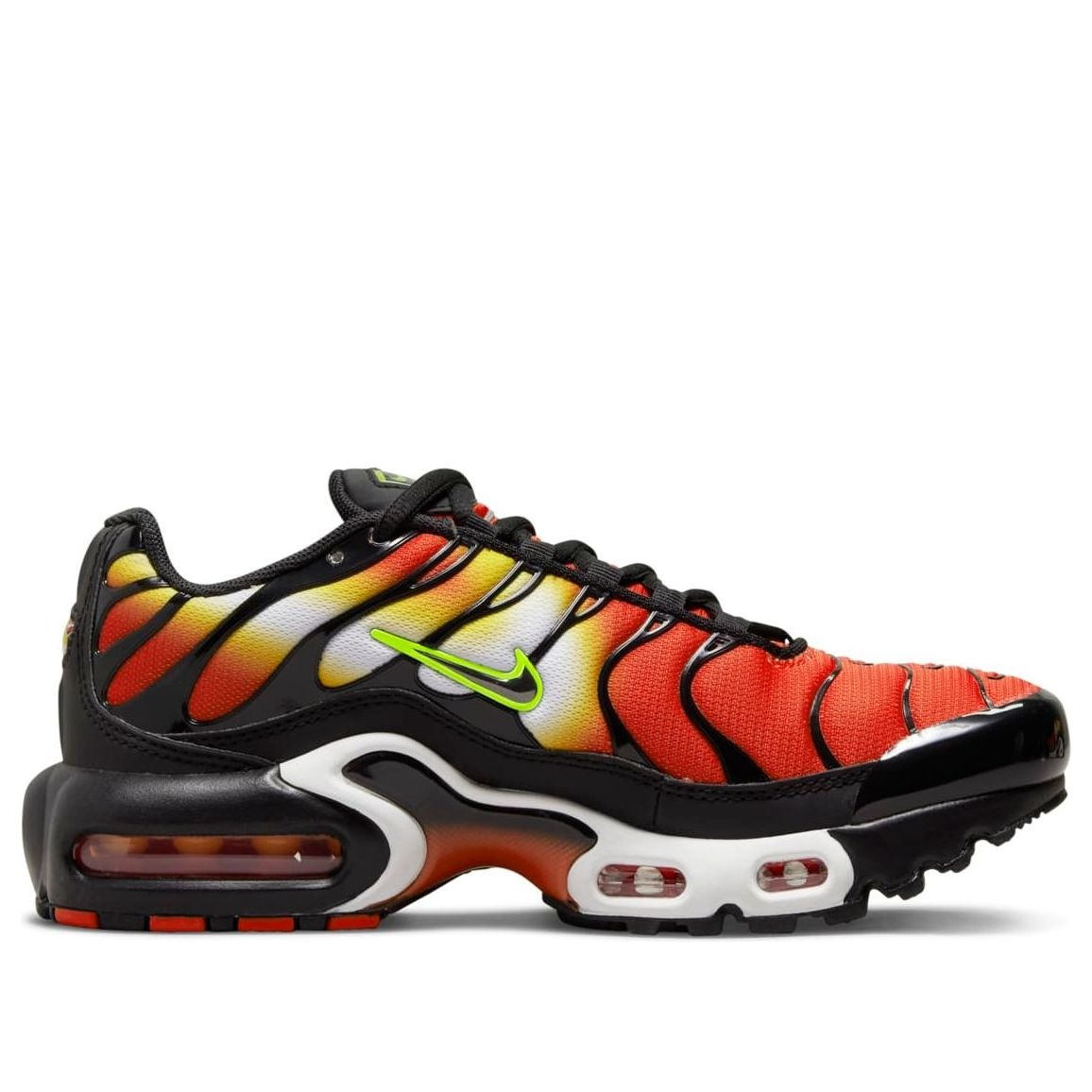 The Nike Air Max Plus Sunset Orange Yellow (2021) (GS) features a Team Orange/Black/Volt colorway. This Nike Air Max Plus was first released for $120.