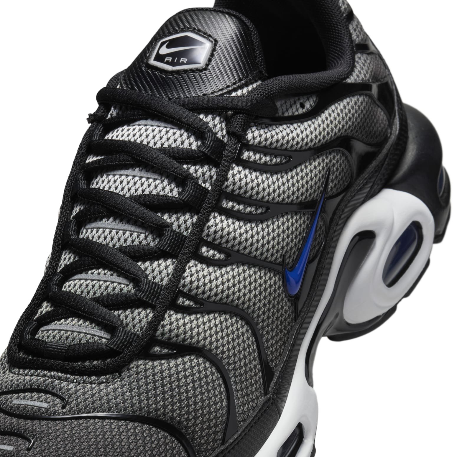 The Nike Air Max Plus White Black Racer Blue features a White/Black/Anthracite/Racer Blue colorway. This Nike Air Max Plus was first released for $180 on October 01, 2024.