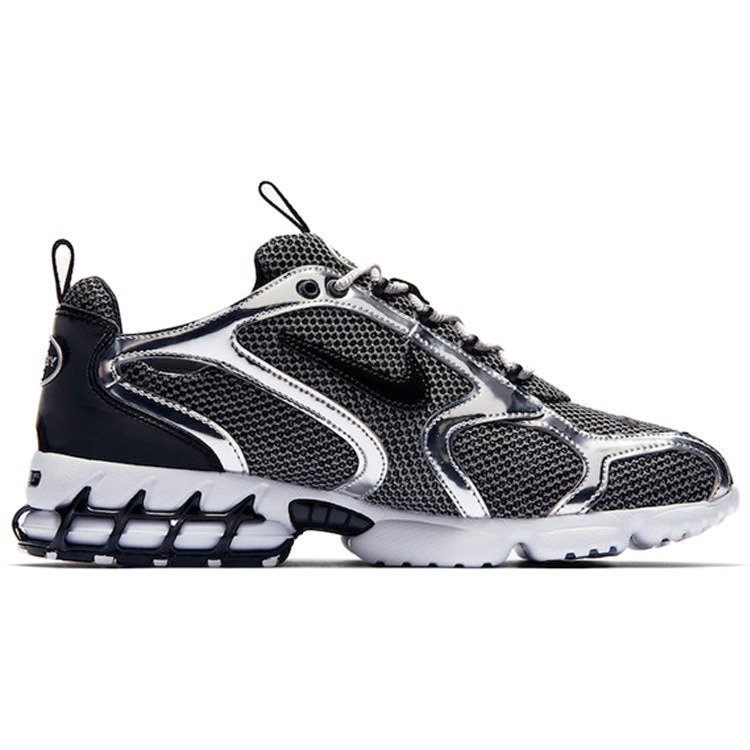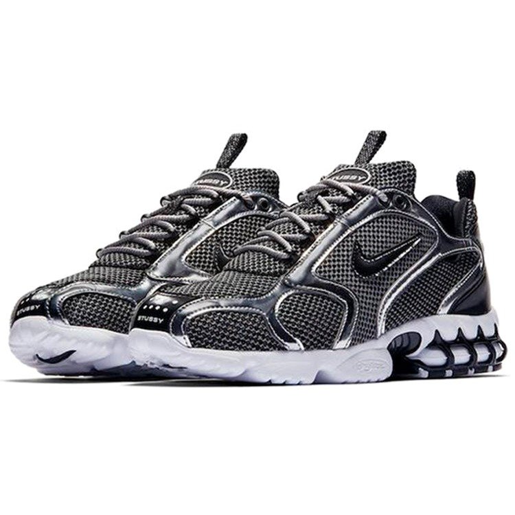Stussy teams up with Nike once again to deliver the Nike Air Zoom Spiridon Cage 2 Stussy Pure Platinum, now available on Newsole. After originally debuting in 2003, this design received a refresh with the help of lifestyle label Stussy.This Spridion Cage 2 consists of a mesh upper with Pure Platinum overlays and a black Swoosh. A caged Zoom Air unit, Stussy branding on the heel and toe, and white sole completes the design. These sneakers released in April of 2020 and retailed for $160.